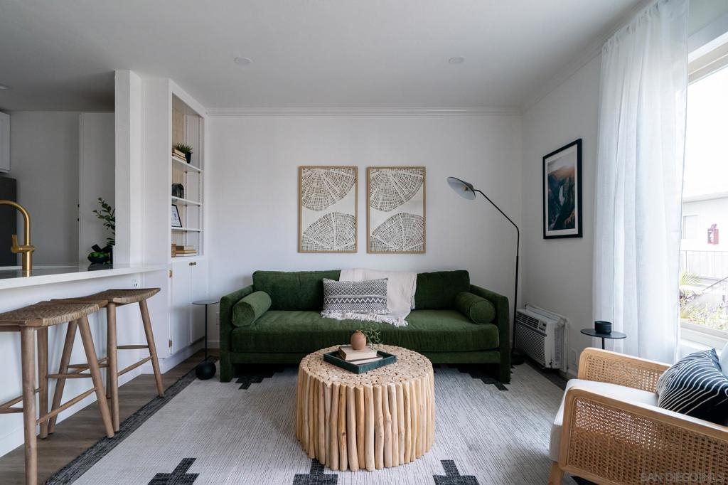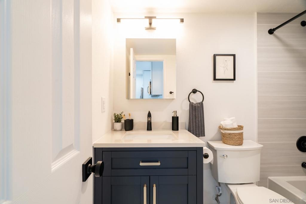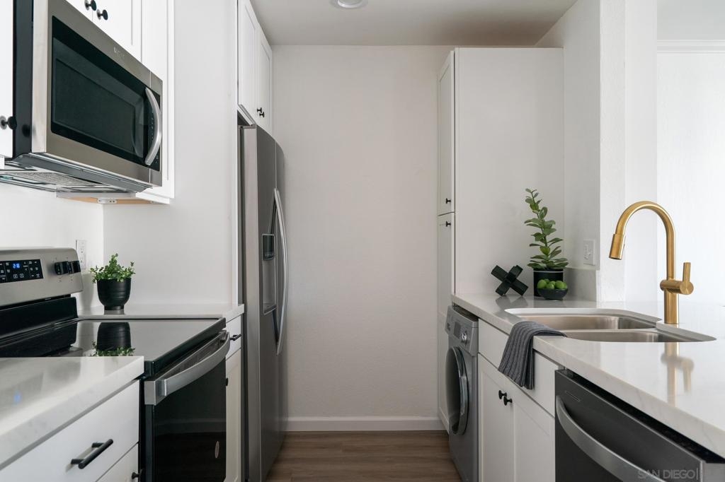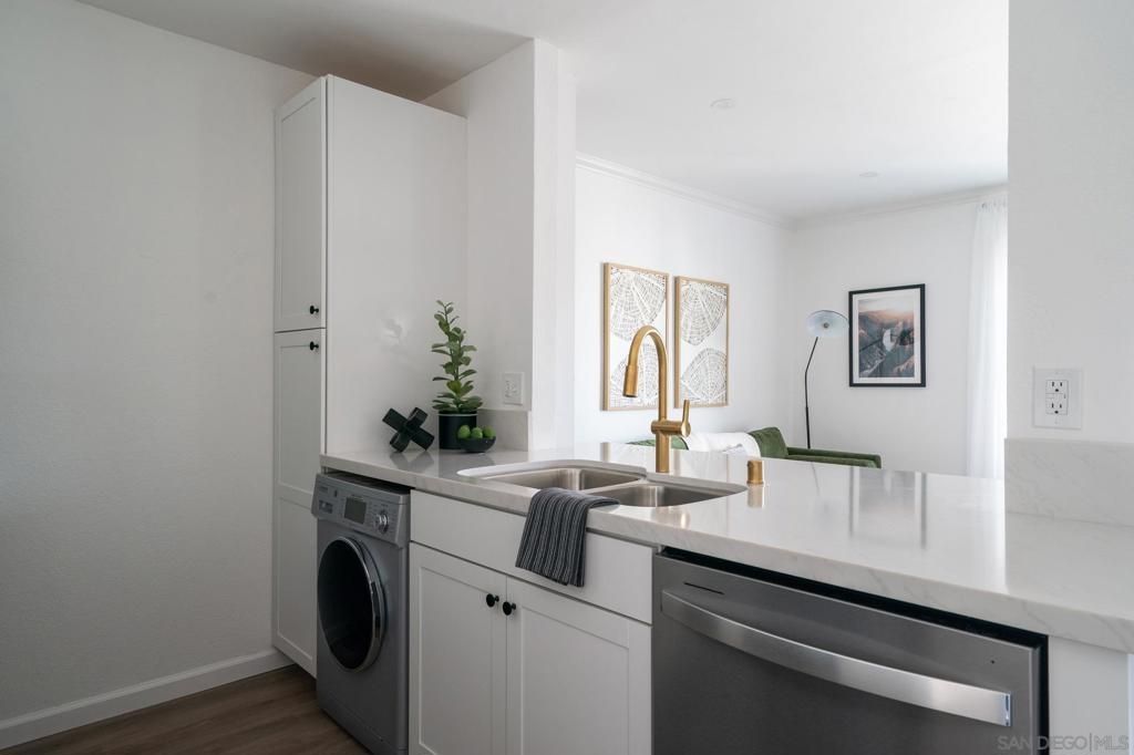 Don't miss this rare gem! Located in Cherokee Point close to the heart of North Park this bright spacious top floor unit has everything you need plus a GARAGE with additional driveway spot and storage cabinet. Open floor plan that has been completely remodeled throughout with modern updates featuring all new kitchen shaker style cabinets, quartz counters with oversized eat-at counter, stainless steel appliances and an all-in-one washer/dryer combo. Bathroom is all new with marble top vanity, tile floors and custom shower tile. Unit also offers recessed lighting, new flooring, dual pane windows and large walk-in closet. Cozy up to the fireplace with custom limestone surround or stay cool in the summer with wall unit A/C. One of 8 units in this private and gated secure complex with low HOA fees. Ideal location with easy freeway access and within walking distance to all the best restaurants and coffee shops! Perfect for first time homeowner or investor. Agent/Owners have Real Estate licenses and financial interest in the property Bathroom is all new with marble top vanity, tile floors and custom shower tile. Unit also offers recessed lighting, new flooring, dual pane windows and large walk-in closet. Cozy up to the fireplace with custom limestone surround or stay cool in the summer with wall unit A/C. One of 8 units in this private and gated secure complex with low HOA fees. Ideal location with easy freeway access and within walking distance to all the best restaurants and coffee shops! Perfect for first time homeowner or investor. Sewer: Sewer Connected