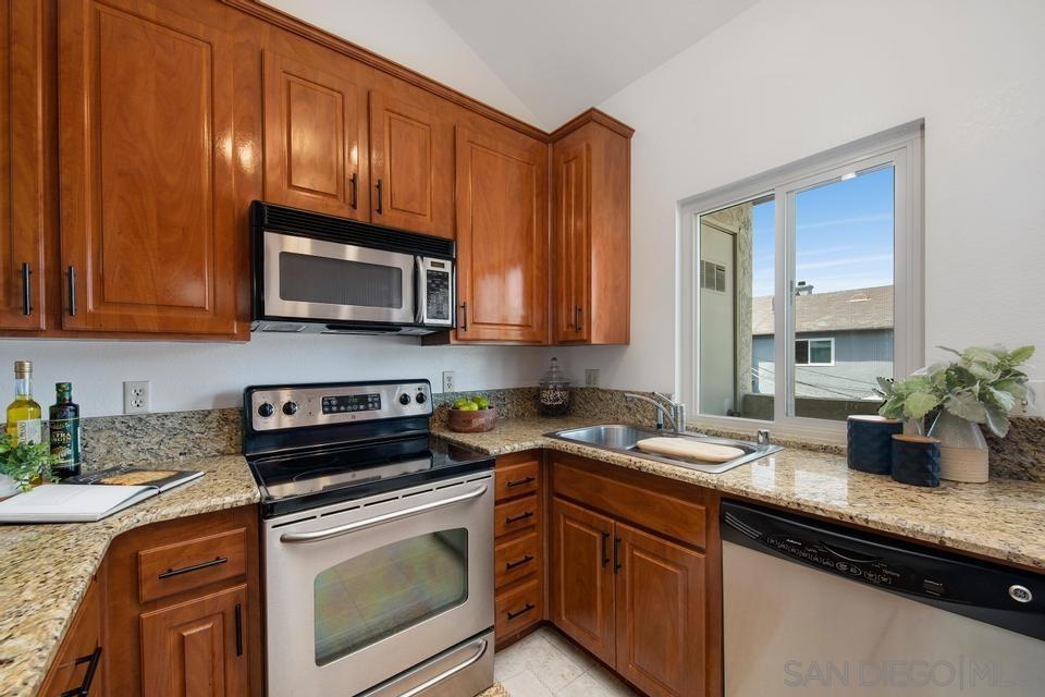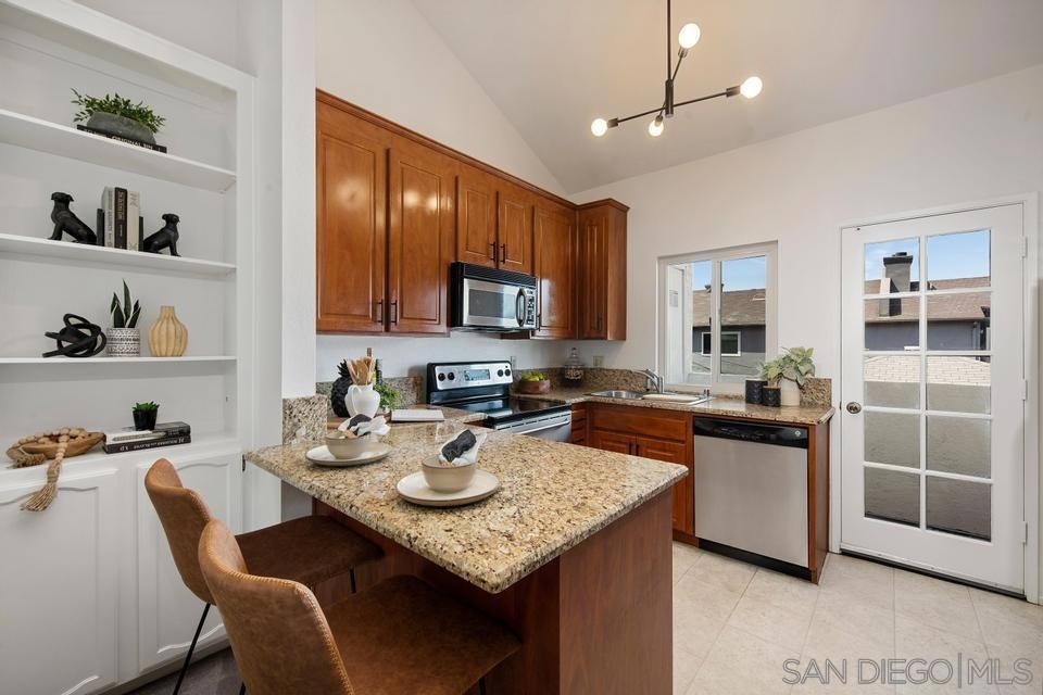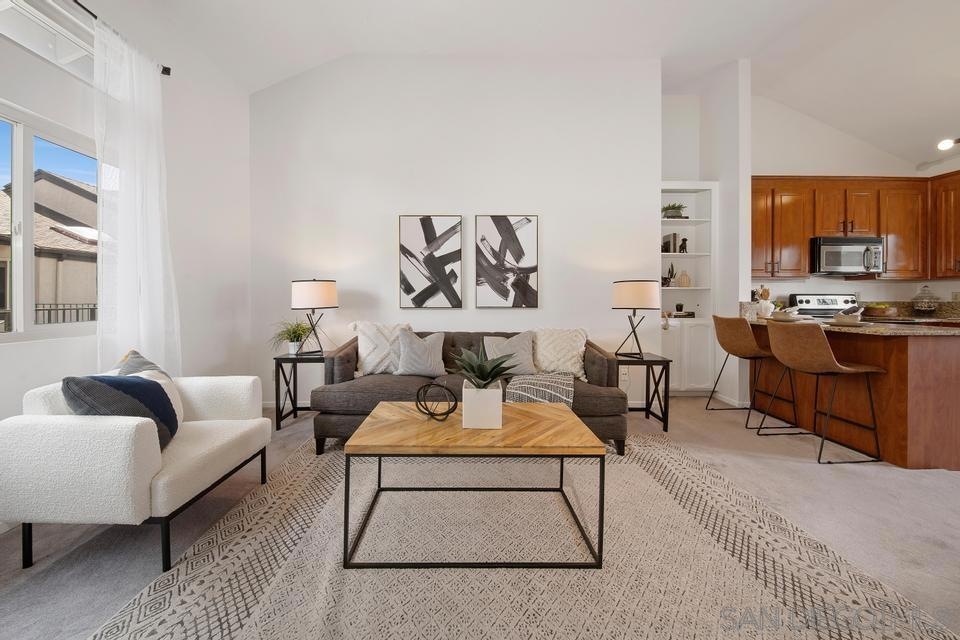 Welcome to North Park's finest! Step into this quaint, well-maintained enclave, situated ideally within walking distance of almost all things North Park. The home has recently been refreshed and is ready for you to move in. It features a wonderful open concept living, dining and kitchen offering soaring ceilings and a cozy fireplace. The kitchen is spacious with exceptional counter and prep space not normally found in this price and home segment. An abundance of cabinetry and a large wide granite peninsula provides the perfect combination. The home features a primary bedroom with excellent closet space and easy access to in-unit stackable laundry, right off the balcony. The home has two parking spaces and for our ever-warming summers, forced air A/C!