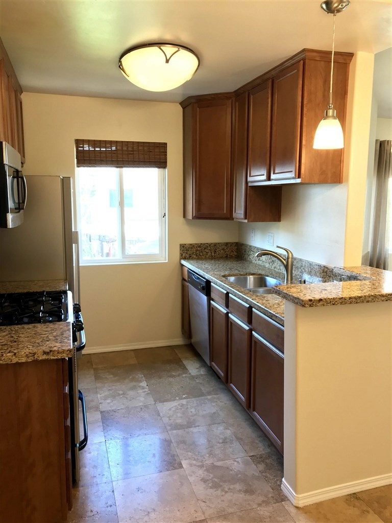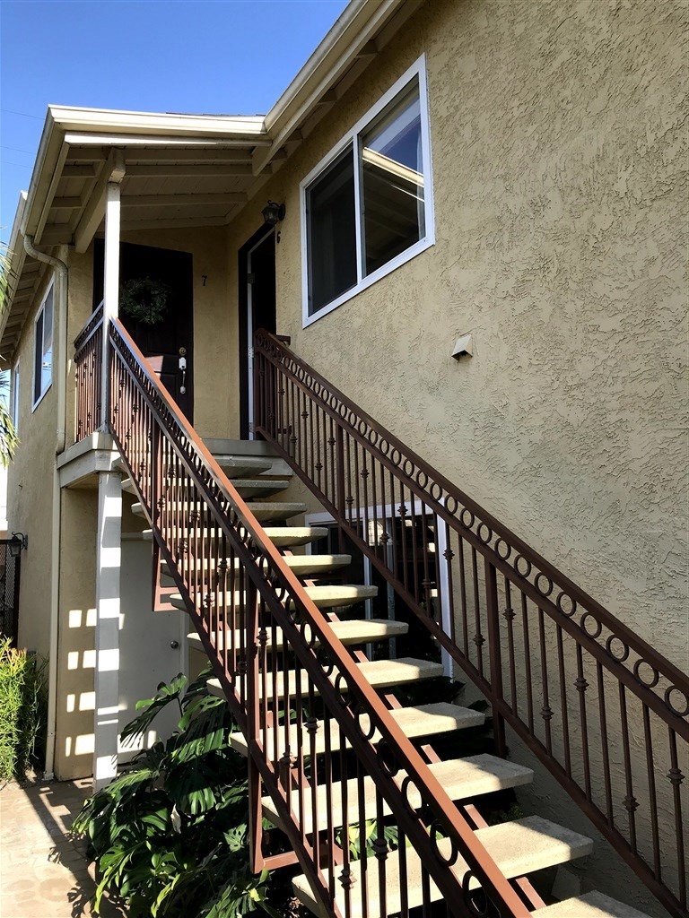 Stunning North Park 2BR/2BA Condo. High ceilings in the Living Room & Bedrooms give this open floor-plan upper unit an enormous feel. Spacious Living Room w/ skylight & fireplace opens to the Dining & Kitchen w/ stainless steel appliances & granite countertops. New Dishwasher. Gorgeous wood vinyl flooring throughout. Beautiful full baths. Walk-in master closet. AC, W/D. GARAGE & EXTRA PARKING SPACE! Quiet 7-unit complex. Low HOAs. HOME INSPECTION DONE! Turn-key condo ready for move-in now! Priced to sell. Stunning move-in ready North Park 2BR/2BA Condo with excellent walkability to restaurants, breweries, the farmer’s market, and Balboa Park. This upper floor unit has an open concept floor plan with expansive ceilings in the living room and bedrooms. There is a wood fireplace and skylight providing ample light in the living room. The kitchen has all stainless steel appliances, granite countertops, and a breakfast bar. Gorgeous new durable wood vinyl flooring throughout with large stone tiles in the kitchen and bathrooms. The two full bathrooms are both upgraded with stone showers and granite countertops. Both bedrooms are spacious with high ceilings and ceiling fans. The master bedroom has an ensuite bathroom and walk-in closet. Rare 1 car garage with additional storage space and 1 tandem secondary parking space with ease of exit into a quiet alley. There is an in unit stackable washer drier and air conditioning. Pride of ownership is shown with this quiet 7-unit gated complex with updated lush landscaping throughout. Low HOA fees. Home inspection completed with repairs finished prior to listing. Turn-key condo ready for move in now! Priced to sell.. Neighborhoods: University Heights Equipment: Garage Door Opener, Range/Oven Other Fees: 0 Sewer: Sewer Connected Topography: LL