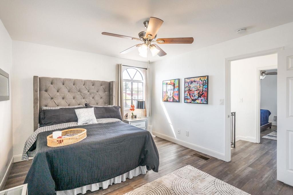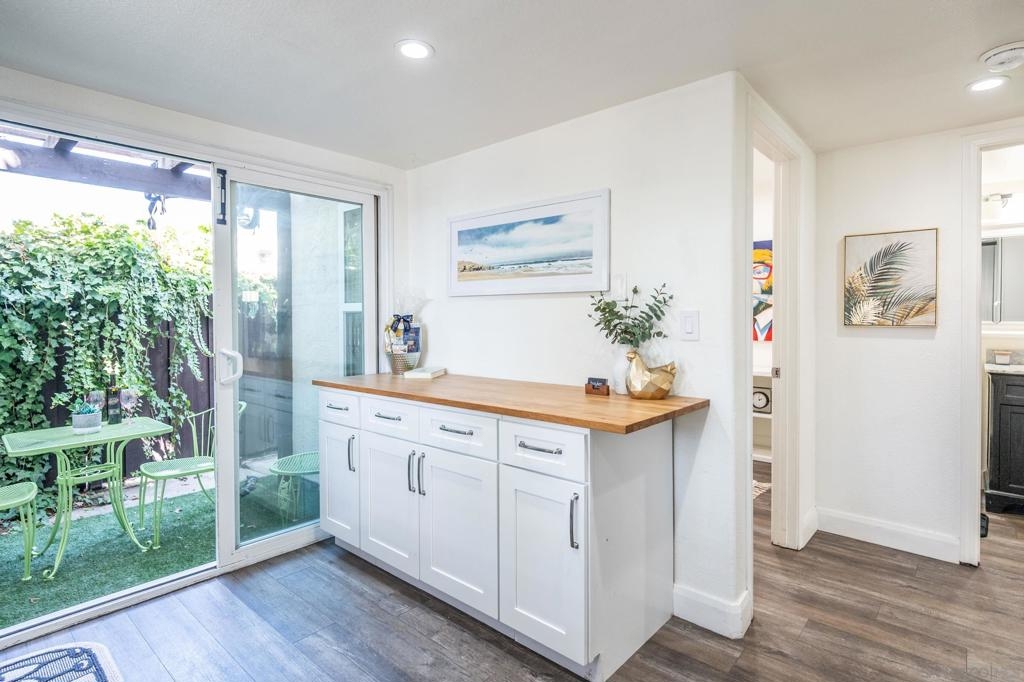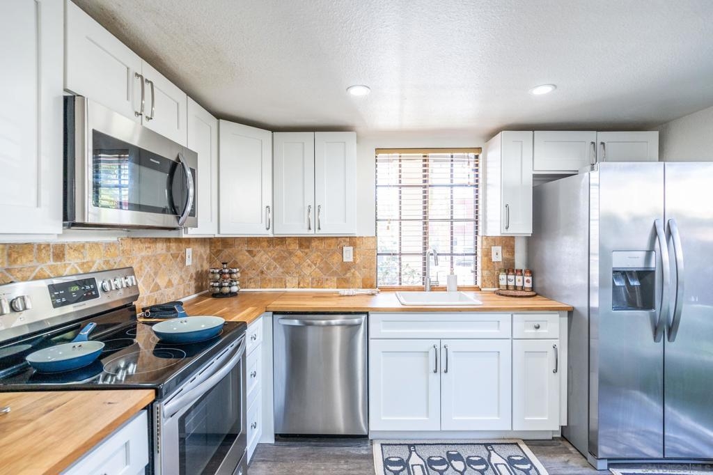 Recently remodeled North Park/Corridor 2 story Townhome w/ 1 Bed/Bath Downstairs & Dual Primary On-suites with laundry upstairs. Central City location between the 805 and 15 freeways for commuting options. Stones throw to all the hustle of North Park with much more tranquility. Low HOA offerings with 2 parking spots in a well maintained smaller complex! This west facing unit allows natural light flow into living and resting areas due to numerous windows throughout, but it's a nice calm morning wake up since no windows face east.The exterior patio off the kitchen offers a great setting for a morning coffee before work or an al fresco style appetizer evening with friends. Newer flooring throughout, updated stone and tile in the bathrooms, large galley style kitchen with butcher block serving areas and countertops, new cabinets/vanities throughout and finally, built in shelving in the walk in closets. FHA/VA approval options. .5% interest rate drop by FED suggest this home will move fast! Don't miss an opportunity to view! Kitchen, Baths, flooring remodeled in 2019. One shower is a walk in shower and one is a bath/tub combo. All appliances shall convey with an acceptable offer.