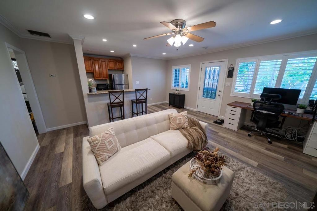Welcome to this beautiful top floor condo located in trendy University Heights! Top floor is located in a small gated complex with 1 assigned parking spot, offers an open floor living space. Unit completely updated interior features plantation shutters in the livingrom and dining area, newer luxury vinyl plank flooring throughout, cieling fans in living room and bedroom, bathroom completely remodeled, updated kitchen with stainless appliances. with IN-UNIT LAUNDRY, pre-wired for a mini-split, the only unit wired for an electric vehicle, has a whole house fan and a small storage space located on the side of the building.