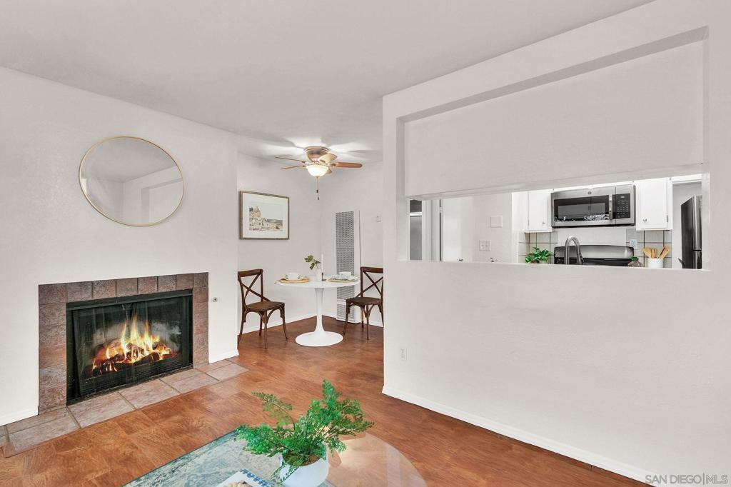 This ground level condo feels like a single family home as you drive directly off the street, thru your driveway and into the direct-entry garage! The 2 bedrooms and bathrooms are conveniently separated by the open living space and there is an in-unit laundry closet along with a free, community laundry just steps away. Love the low HOA fee and the extra advantage of your own driveway parking space. Plus...relax to the sound of the peaceful waterfall outside the living room window. Enjoy the walkability to shops, cafes, Trader Joes, Sprouts and some fun nightlife. Sellers are leaving the portable a/c unit with the home.