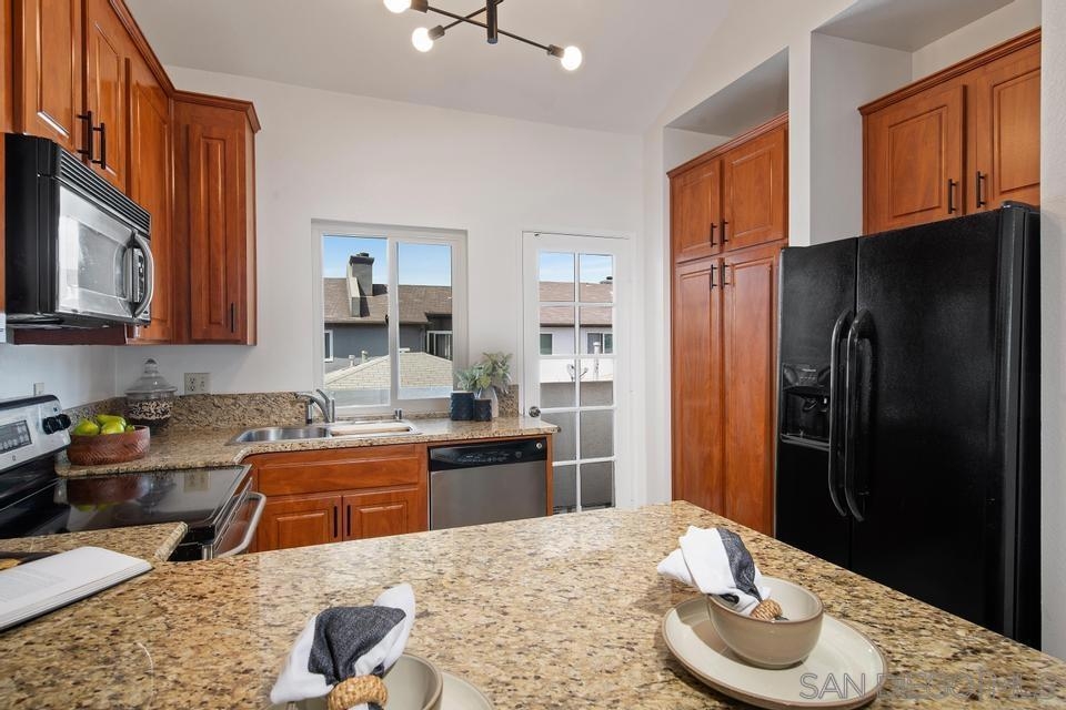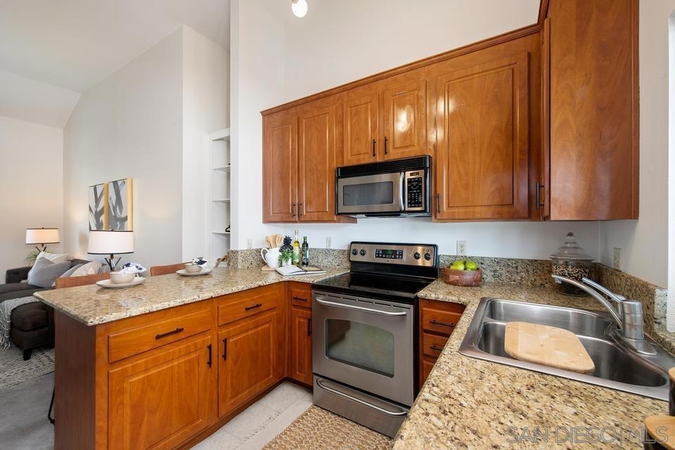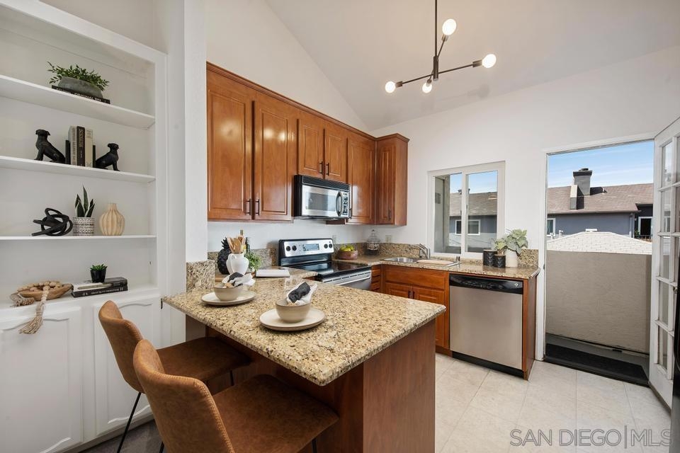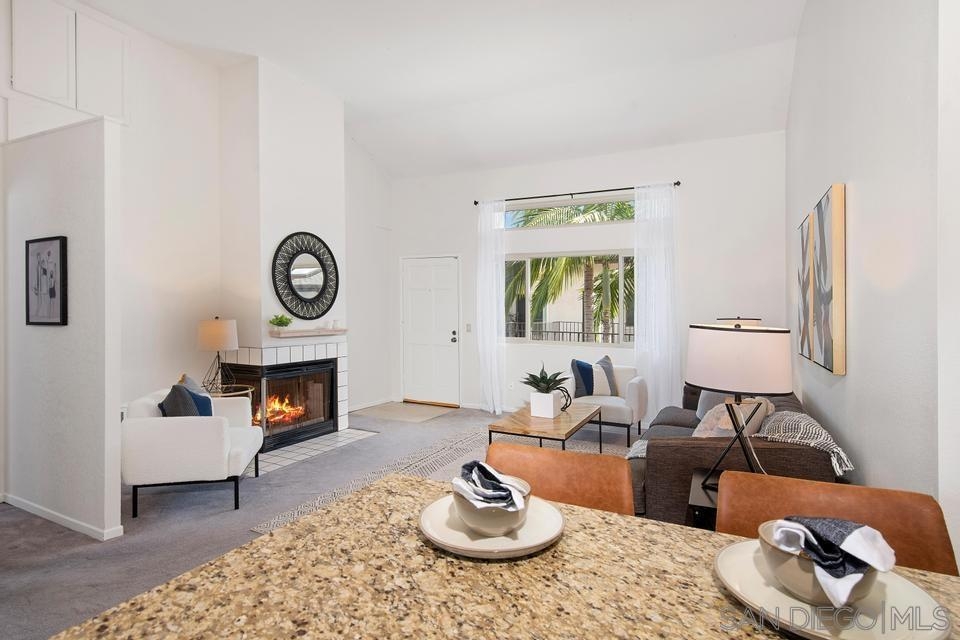 Welcome to North Park's finest! Step into this quaint, well-maintained enclave, situated ideally within walking distance of almost all things North Park. The home has recently been refreshed and is ready for you to move in. It features a wonderful open concept living, dining and kitchen offering soaring ceilings and a cozy fireplace. The kitchen is spacious with exceptional counter and prep space not normally found in this price and home segment. An abundance of cabinetry and a large wide granite peninsula provides the perfect combination. The home features a primary bedroom with excellent closet space and easy access to in-unit stackable laundry, right off the balcony. The home has two parking spaces and for our ever-warming summers, forced air A/C!