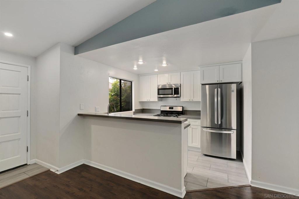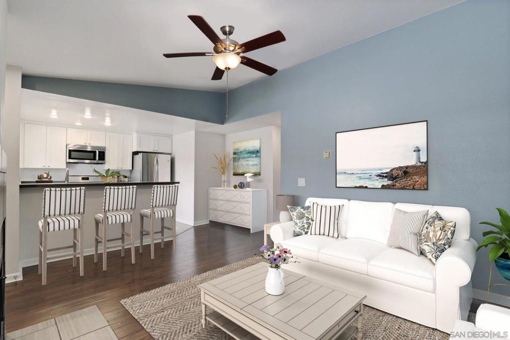 In the heart of North Park, this renovated upper floor beauty awaits your arrival! As you enter you will gaze upon a light and bright open floor plan adorned with stunning wood laminate flooring and soaring vaulted ceilings creating a high volume living atmosphere. The living room, dining area and kitchen flow seamlessly together for ease of daily living. Open the living room balcony doors wide to let the cool breezes flow through all year long. The fireplace in the living room features a gorgeous surround. The kitchen has been reimagined to feature crisp, white cabinetry, quartz countertops, stainless steel cooking, recessed lighting and an eat-at breakfast bar. The bathroom has been upgraded with modern flair to offer a new vanity, custom mirror and lighting and a shower/tub with gorgeous tile surround. Parking within the complex will be a breeze with 1 assigned garage space and 1 additional parking space. In the heart of North Park, there is no need to take the car when you go out, this beauty is close to the trendiest of outstanding dining, galleries, boutiques, and nightlife! You are where everyone wants to be! To see it is to love it! Sewer: Sewer Connected Topography: LL
