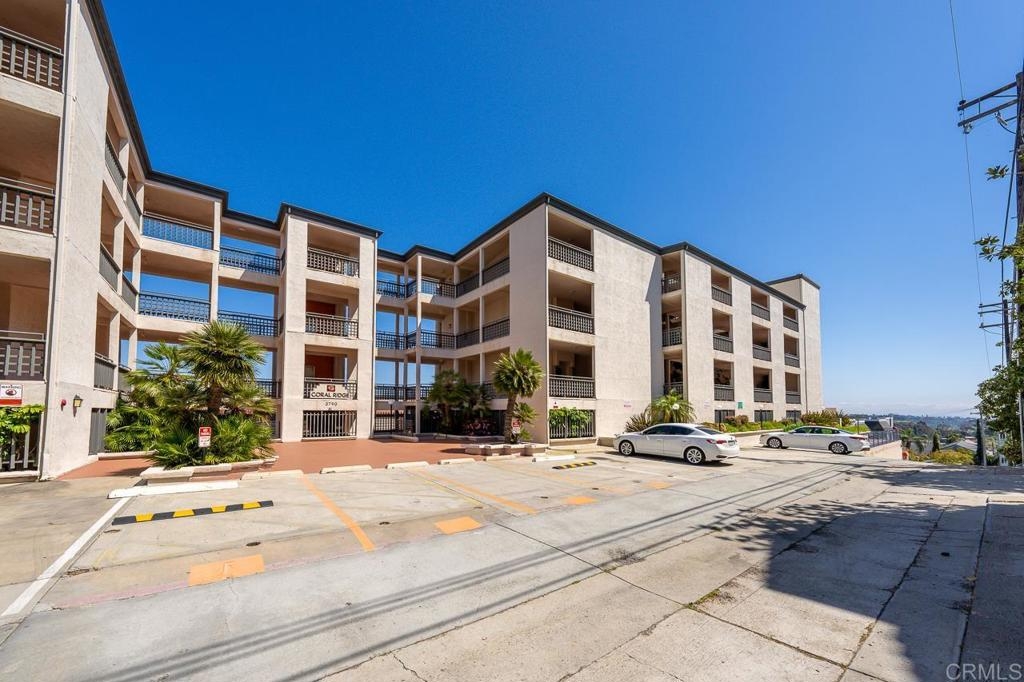 Step into urban elegance with this charming North Park condo nestled in the desirable Coral Ridge complex. This unit has some of the best views in the complex! Boasting two bedrooms, two bathrooms, and a spacious 815 square feet, this residence offers a perfect blend of style and functionality. Upon entry you're immediately greeted by the lofty vaulted ceilings and the modern kitchen, complete with stainless steel appliances, ample cabinet space, and a cozy breakfast bar. Seamlessly entertain in the oversized living area that flows onto a private balcony where you can enjoy stunning sunrises and panoramic Eastern views. The property comes with two parking spots, in-unit laundry, AC, and access to a community spa and gym, all included in the HOA fee, which also covers water. Perfectly positioned on the border of Hillcrest and North Park, you'll be within walking distance of a plethora of dining, shopping, and entertainment! These units don't last long so come check it out this weekend!