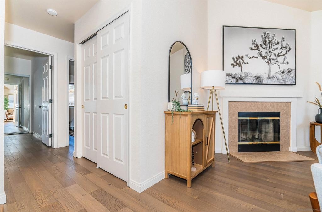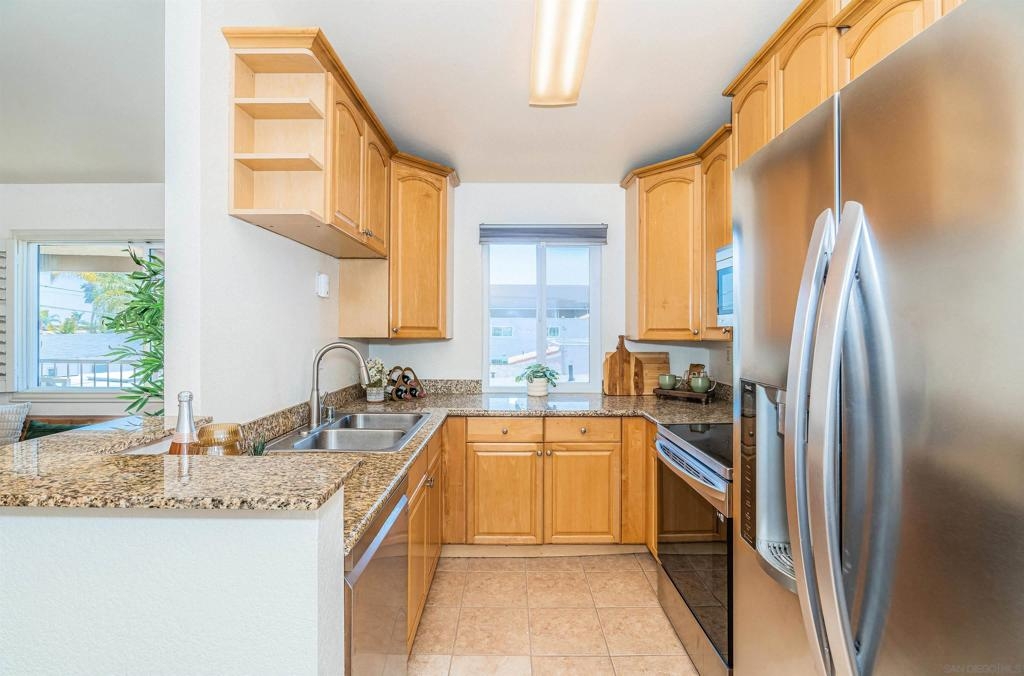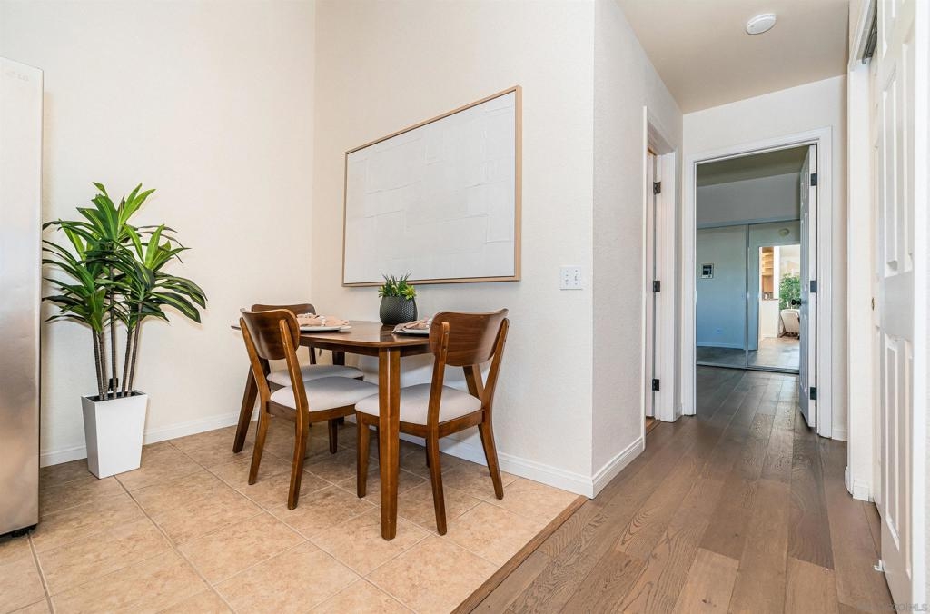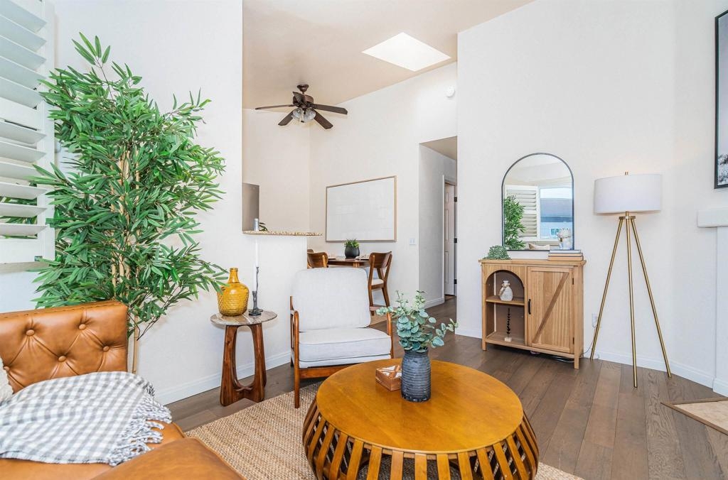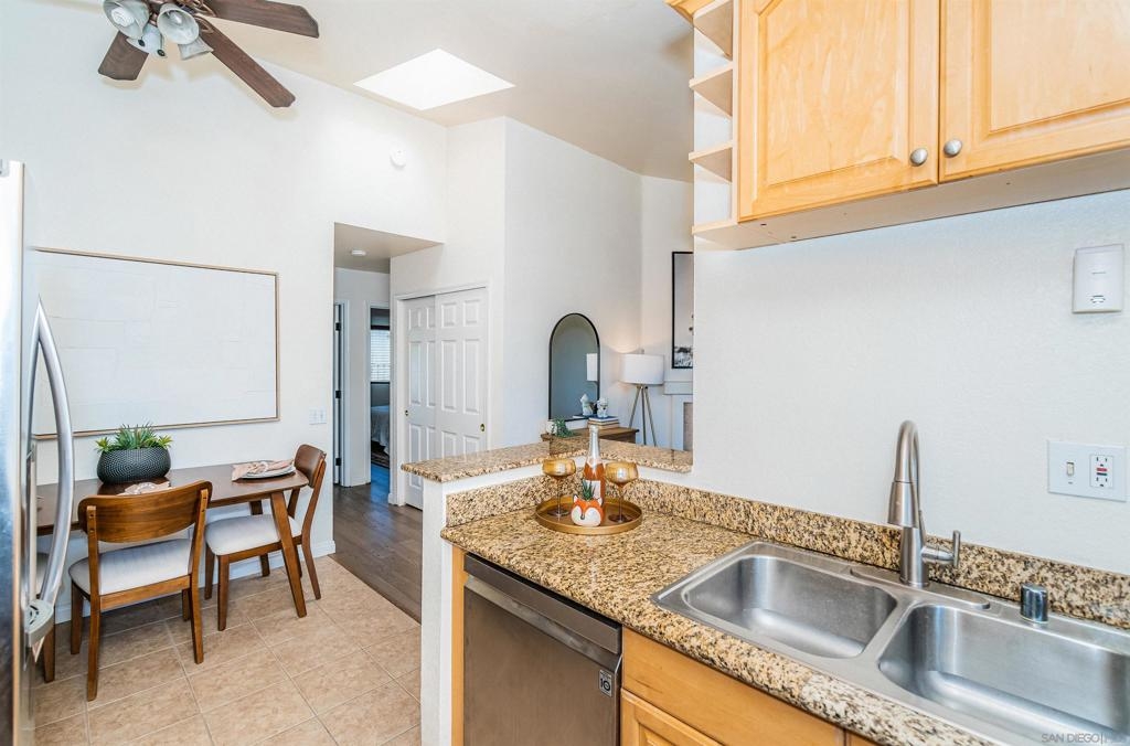 Fresh, bright and move-in ready, this beautiful 2-bed, 2-bath top-floor condo pairs style with serious value. Inside, vaulted ceilings, skylights, brand-new dual-pane windows, and engineered wood floors create an airy, modern vibe. Gather in front of the fireplace, then cook and dine in an updated kitchen featuring gleaming quartz counters and a full suite of LG stainless-steel appliances. The HOA already approves in-unit laundry, and you’ll have a private garage plus a second assigned space. All this is just three blocks from I-805 and close to Adams Avenue cafés, craft beer, and boutiques. Rare to find this combination of location, convenience, and incentive—come see why it’s Normal Heights’ smartest buy!