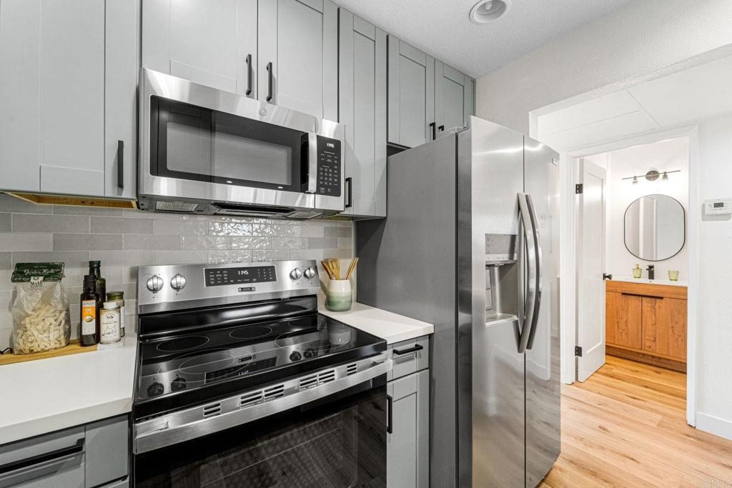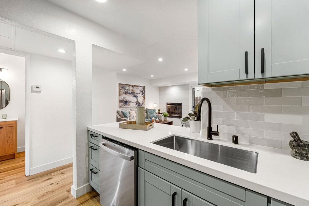 Welcome to this fully remodeled 2-bed, 2-bath condo in the heart of North Park. This lower unit offers an open floorplan with a cozy family room featuring a fireplace, along with an upgraded kitchen boasting sleek quartz countertops, beautiful cabinetry, and handsome vinyl flooring throughout. The spacious bedrooms and luxuriously remodeled bathrooms, both with quartz counters, provide modern comfort and style. The convenience of an in-unit laundry closet and cozy private outdoor space add to the appeal. Located just a short stroll from North Park’s best boutiques, cafes and North Park Farmers Market, this home is at the center of vibrant city living. You’ll also enjoy easy access to highly rated schools and the nearby North Park Recreation Center, which boasts public tennis courts, sports fields and a dog park. Set in a quiet neighborhood, this condo is just moments from freeway access, downtown, Balboa Park and more, making it the perfect balance of peaceful living and urban convenience.