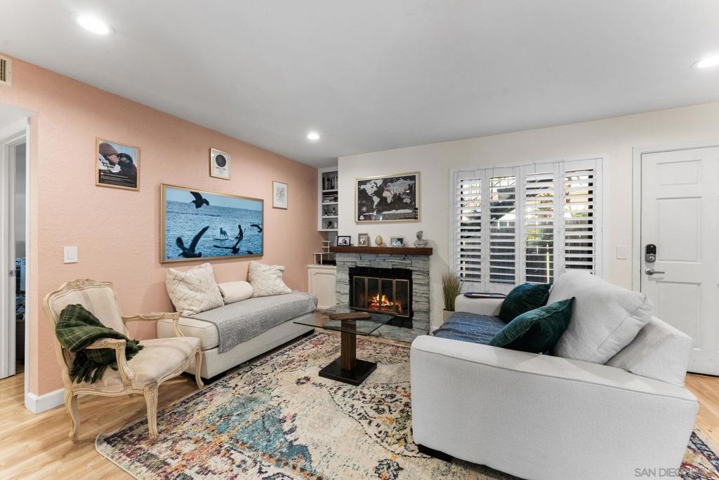 Step inside and welcome home to this sharp 2 bedroom, 2 bathroom single level home in a well maintained, small 7 unit gate community walking distance to restaurants, bars and shops, even a Michelin Key award winning hotel. This North North Park home is even walking distance to University Heights favorites! San Diego living at it’s best with low homeowner fees but lots of smarts, charm and character. This move in ready ground level unit has no stairs but a beautifully and professionally remodeled kitchen that looks onto it’s private back yard/patio! Two nice bedrooms and two full (tub and shower) bathrooms, one attached, and both BRs enjoy spacious closets upgraded by CALIFORNIA CLOSETS! Brand new (2022) dual paned slider door from primary bedroom to the back outdoor area. Also new dual paned windows in living room, kitchen and bedroom; new plantation shutters; luxury vinyl plank flooring. NEST thermostat; YALE Smartlock; Welcome home! See supplement for more This home truly does have it all...from its walkability to restaurants, coffee shops and bars on El Cajon Blvd. and 30th St. (Lafayette Hotel just got a Michelin Key; Cafe Madeleine; Thai Time NP; Working Class; Pour House & Belching Beaver NP; Leila; Observatory NP; Part Time Lover; COLLINS & COUPE & more!!) to the beautifully updated flooring, open kitchen with tons of counter space, gorgeously remodeled bathrooms, recessed lighting, in-unit washer/dryer, central air conditioning, ceilings fans in 3 rooms, private patio yard off the primary bedroom, cozy fireplace for those quiet nights at home, and 3 (tandem) parking spaces, it’s going to be hard to beat this one! Tastefully updated: Sellers replaced back (primary) bedroom slider door with brand new dual paned. They also recently remodeled the entire kitchen! NEW in 2025: Edward Martin Porcelain checkered tile; new quartz countertops; new GE oven with air fry; new Zephyr under cabinet range hood; new GE French Door refrigerator with filtered water and ice maker; new kitchen sink work station with glass rinser feature; new instant hot water dispenser! Bosch dishwasher. Central A/C. This gem is centrally located in the heart of one of San Diego’s most desirable neighborhoods, North Park! Come take a look for yourself and experience all that this lovely home and neighborhood have to offer.