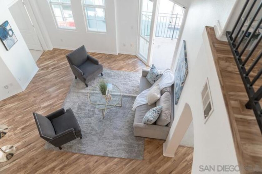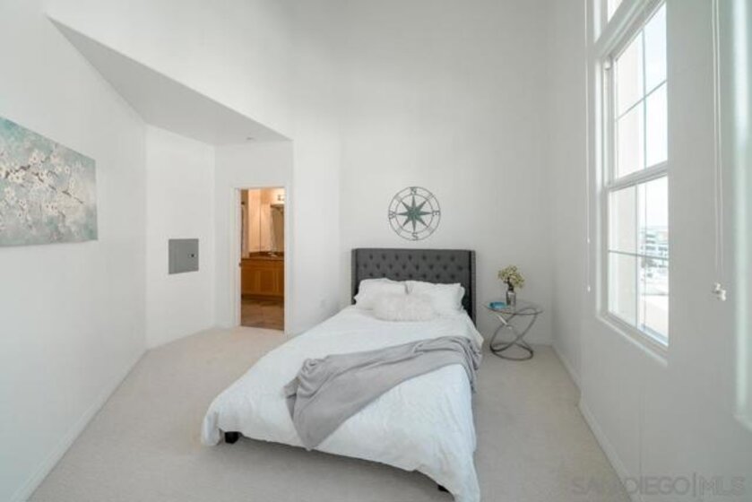 In the sought-after La Bohème community, discover one of North Park’s most stunning residences! This top-floor, west-facing showpiece at Unit 507 features soaring 20+ foot ceilings, and dramatic two-story windows The open layout seamlessly blends kitchen, dining, and living areas, centered around a striking spiral staircase. The primary suite boasts a spa-sized bathroom and a generous walk-in closet, while a second bedroom, full bath, and full-size laundry complete the main level. Step outside to your first private balcony for breezy outdoor living, or head upstairs to the versatile loft—perfect as a home office, media lounge, or guest space—complete with its own second balcony and views of the ocean, Coronado and the islands. Life at La Bohème offers the ultimate convenience: two non-tandem parking spaces, hot tub, gym, sauna, dog wash station, recreation spaces, and HOA dues that cover water, internet, and more. All this in the heart of North Park with a 10/10 walkability score—restaurants, coffee shops, breweries, and boutiques are just steps away.