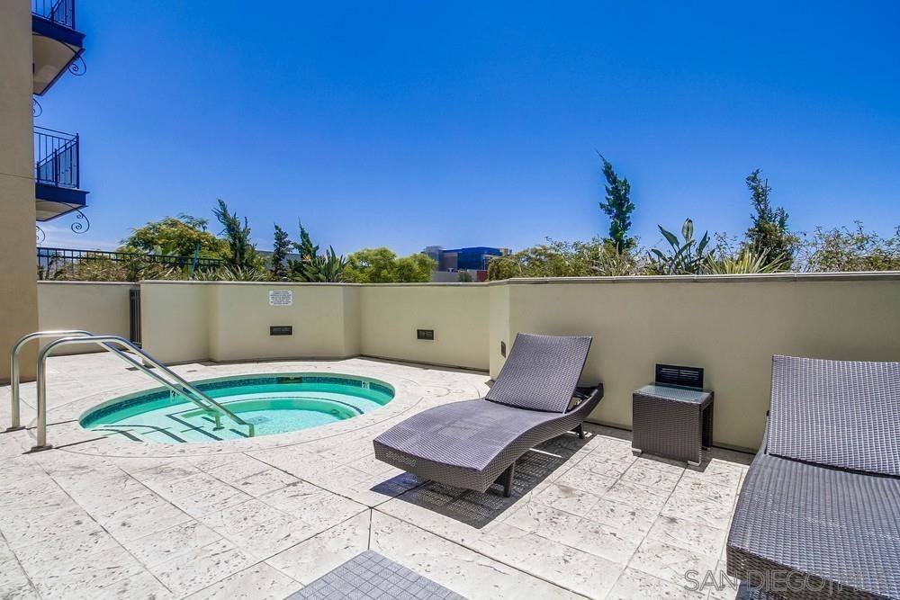 Benefiting from one of the community’s largest floorplans, expansive windows, and soaring ceilings, this spacious and wonderfully private two-story unit lives like a detached home with three individual entrances including one that accesses a secured courtyard with bubbling fountain and lush plantings via your private patio area. Both bedrooms are conveniently located on the main floor and include large walk-in closets - the master suite features an ensuite bathroom with large soaking tub and extra built-in storage nook. The open concept main living area floorplan provides for direct access to the kitchen, with full-size, side-by-side washer-dryer, and multiple closets, all offering a plethora of storage options. Accessed by a charming spiral staircase, the unexpected ground-level optional bedroom or office area has stunning floor-to-ceiling windows and a separate ground entry allowing direct access to a second dedicated private patio. This Mediterranean-style complex is a true urban oasis and features every amenity under the sun - private gym, recreational movie room, sauna, sun deck, jacuzzi with spacious outdoor shower area, separate bicycle storage and four EV charging stations, all perfectly walkable to all North Park’s entertainment options, 30th Street restaurants, shopping, and renowned microbreweries. This home has everything you could ask for in North Park – secure privacy, twin-level living, abundant living space, modern conveniences, and an unbeatable location near all the culture and excitement this special neighborhood has to offer. Equipment: Dryer,Fire Sprinklers,Garage Door Opener, Washer Sewer: Sewer Connected Topography: LL