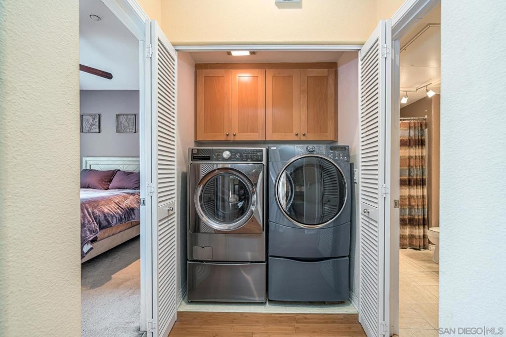 North Park living doesn't get any better than this extra large end unit at La Boheme, whose common spaces have recently been updated and upgraded. Owner occupied since it was built, the property is BIG with over 1200 square feet, so it is perfect for those who want an roommate and their own space or for an office. The unit flows very well with a nice open kitchen with plenty of storage and a breakfast bar that opens to the dining area, and expansive family room. Enjoy in unit full sized washer and dryer. The primary suite is large and luxurious with an oversized closet and full bath. There is a private balcony off the family room for a little outside time. La Boheme is in the heart of North Park and this unit is nestled in the secure building in the back away from street traffic. The unit's parking is convenient to the elevator, and the unit is convenient to the community gym, sauna, rec room, sun deck, and spa! North Park offers some of the funnest bars, bistros, a great and varied restaurant scene, art galleries, and convenience. Complex Features: ,,, Equipment: Dryer, Washer Sewer: Sewer Connected Topography: LL