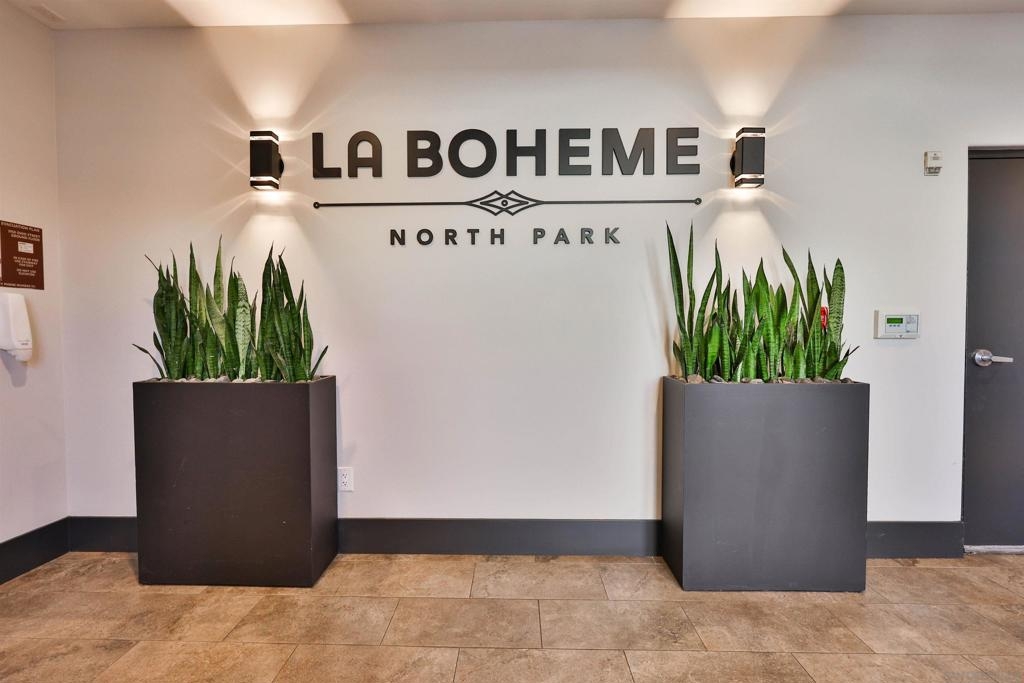 Offered at $588k+. Enjoy the most sought after 1 Bedroom+Loft Floor Plan at the La Boheme Complex in the Epicenter of North Park. Just steps from shops, dining, fitness & grocery! This TOP FLOOR Unit features oversized 1 Bedroom, granite countertops, SS Appliances, Side by Side W&D, ample storage, walk-in closet, dual sink vanity, 2 terraces, abundance of natural light & a classic spiral staircase. Soaring 18 foot ceilings in the Kitchen, Dining & Living Areas make this unit a great place to entertain. The Loft/ Flex Space is perched above the bedroom; with its own outdoor area, giving room to separate your work space or to accommodate guests. Chandelier in Entry & 3 Large Mirrors do not convey. Custom (Removable) Screen Door Coverings for all exterior Doors. La Boheme complex has recently completed its multi-phase renovation including all new landscaping, interior/ exterior paint, lighting, carpet, gym equipment- no common area surface left untouched! HOA includes H20. Complex Features: ,,,,, Equipment: Dryer,Garage Door Opener, Washer Sewer: Sewer Connected Topography: LL