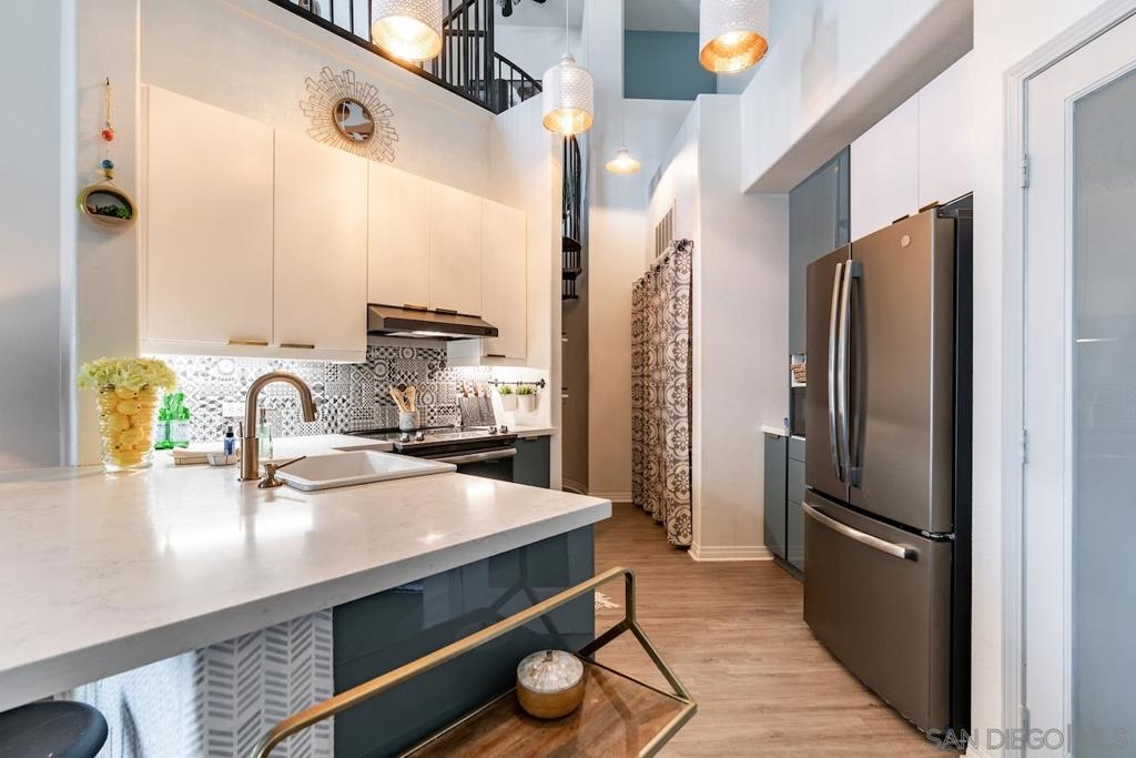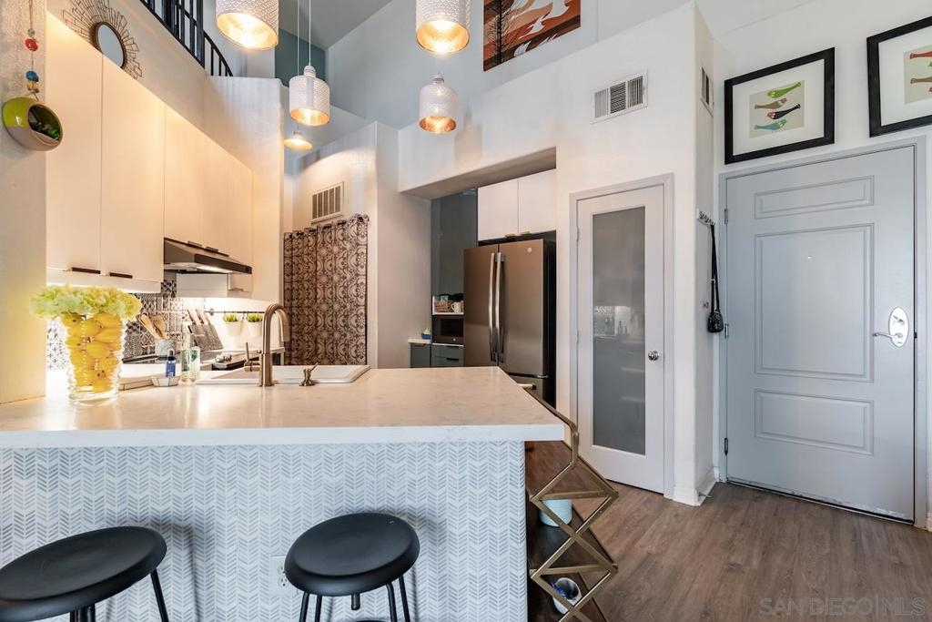 Rarely available penthouse loft in booming North Park! This top floor loft is complete with 22 ft ceilings, two large walk out balconies, custom cabinetry, upgraded flooring throughout, new bathroom vanities, beautiful light fixtures throughout and more! With a walk score of "99", La Boheme is North Park's premier condo building, walking distance to bars, restaurants, retail, grocery stores, music venues and more! Community amenities include spa, sauna, meeting room, electric vehicle charging, and gym. Equipment: Dryer, Washer Other Fees: 0 Sewer: Sewer Connected Topography: LL