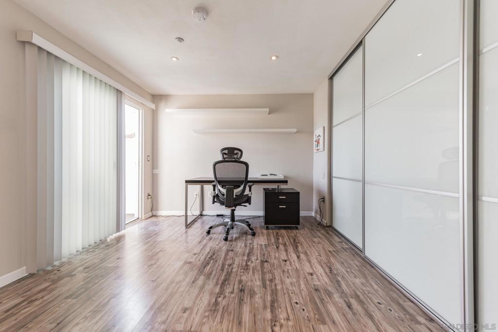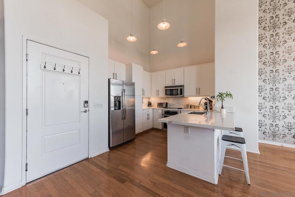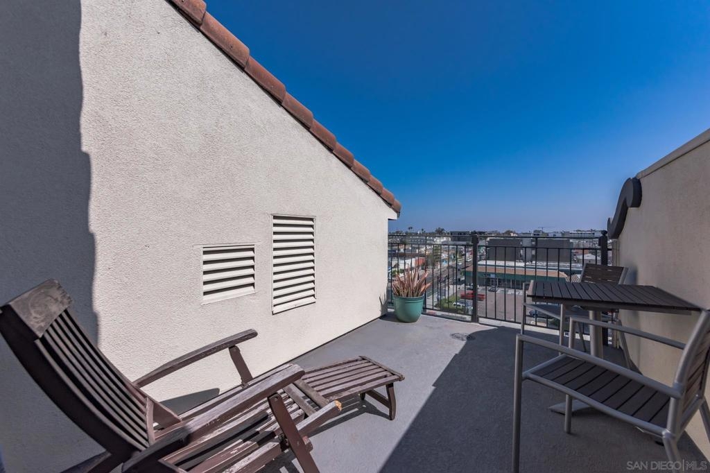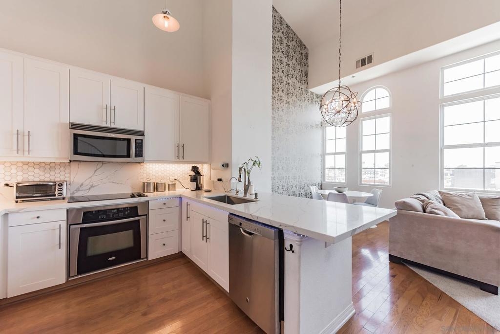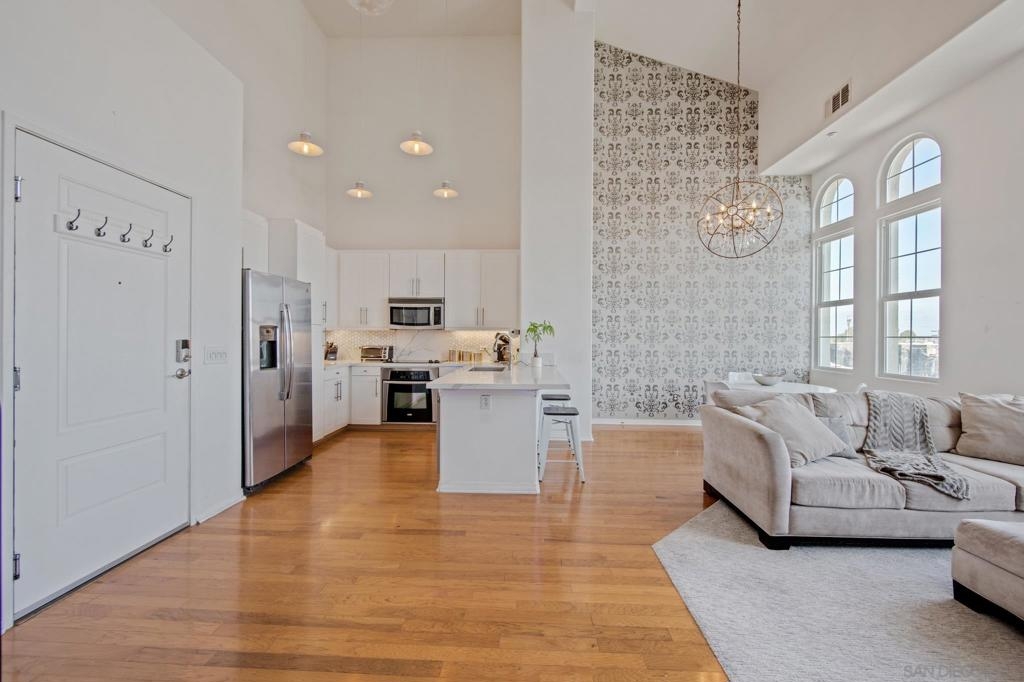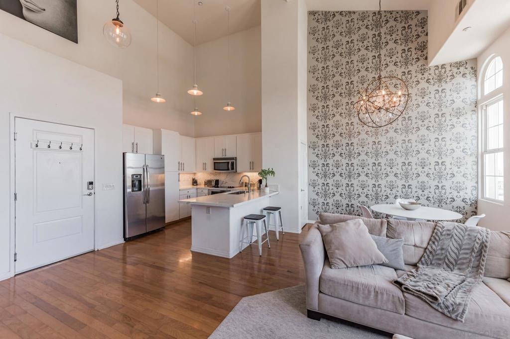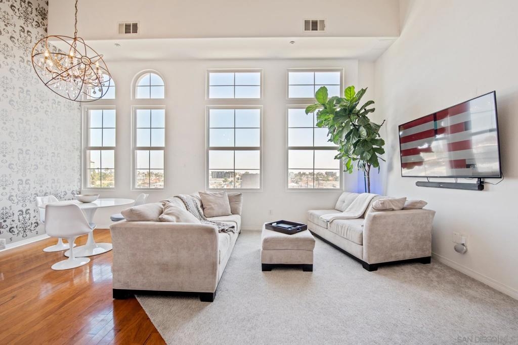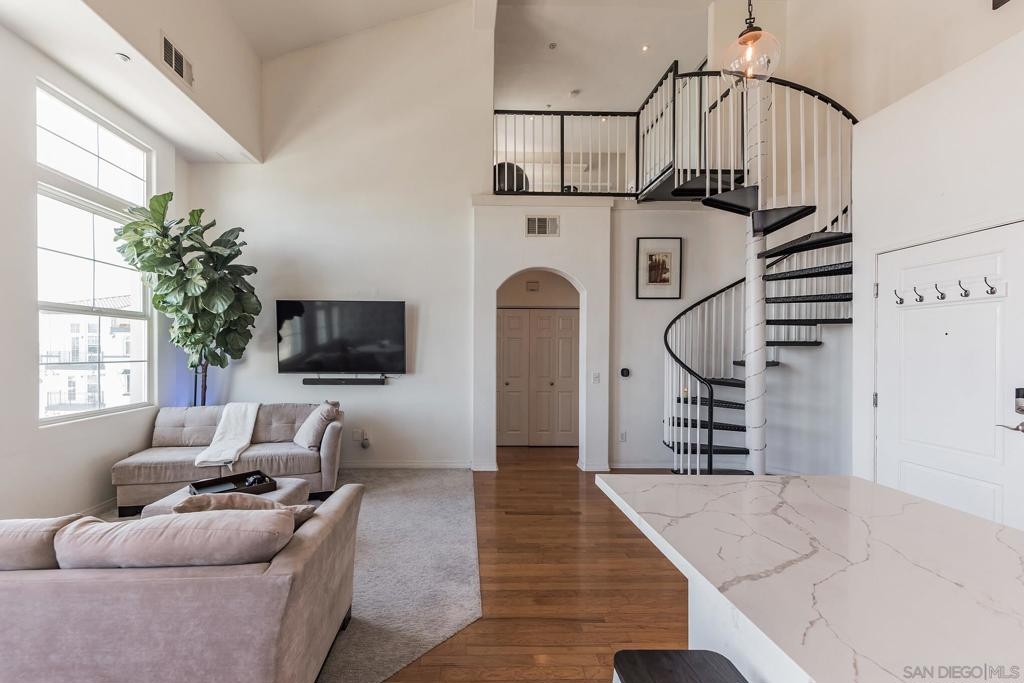 Rare opportunity in North Park's coveted luxury community of La Boheme. Unique 1 bed/bath w/bonus loft, top floor with views to San Bernadino mountains. Unit is currently a mid term furnished rental on Airbnb and grossed 53k last year. Property is being sold furnished. This is a successful profitable business you can buy and continue to operate or move in yourself! Likely the only one bedroom with 2 assigned parking spaces in La Boheme. Amenity building with spa, state of the art gym, walk in storage cage, bike room, ev chargers, and conference room. Secure building, top floor end unit with natural light for days. HOA pays for wifi. Walk to everything and live in the heart of it all in North Park.