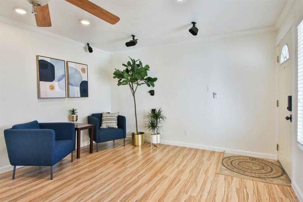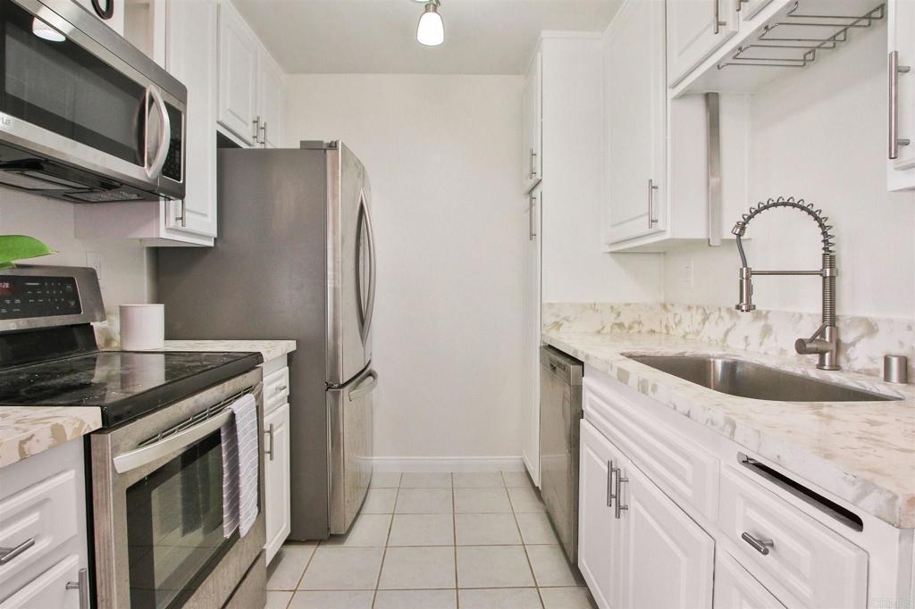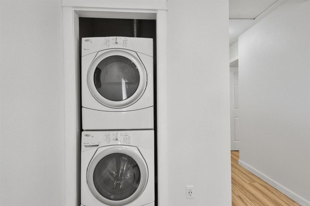 Waiting for the perfect place to call home...This is it. Beautifully Remodeled 2 bedroom, 1 bath unit. New flooring, new paint, remodeled bathroom with an over abundance of storage. The Crown moulding sets off the designers decor. Custom lighting throughout makes the interior shine. Bedrooms have built in closet organizers. Light and bright kitchen with quartz counters and stainless steel appliances. Stackable washer and dryer in unit for ease and convenience will convey with the property. Very secure complex with gated entry and parking. Close to all, just blocks from North Park, restaurants, shopping and more. Easy freeway access makes leaving your home a breeze.