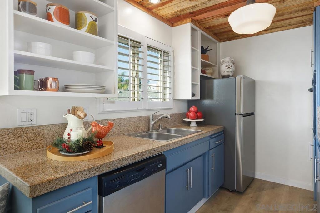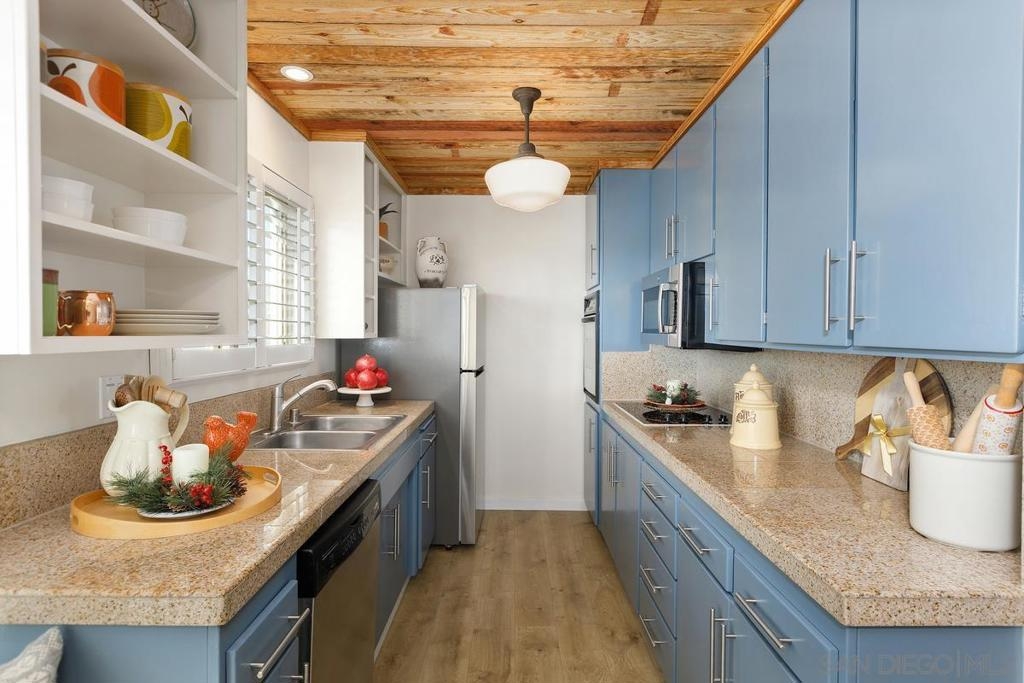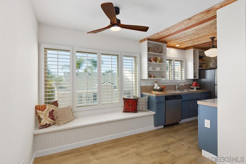 Bright and airy condo in the heart of North Park! Live walking distance from all of the trendy North Park/University Heights bars and restaurants! This updated condo with wood laminate flooring is turn key, complete with updated kitchen featuring stainless appliances, custom wood ceiling, updated hardware and built-in dining room bench. Primary bedroom features updated en-suite bathroom. Both primary and guest baths have updated hardware, tile and custom wood ceilings. Minutes from freeways, Balboa Park and the famous Layfayette Hotel, this gated and private complex is the perfect place to call home.