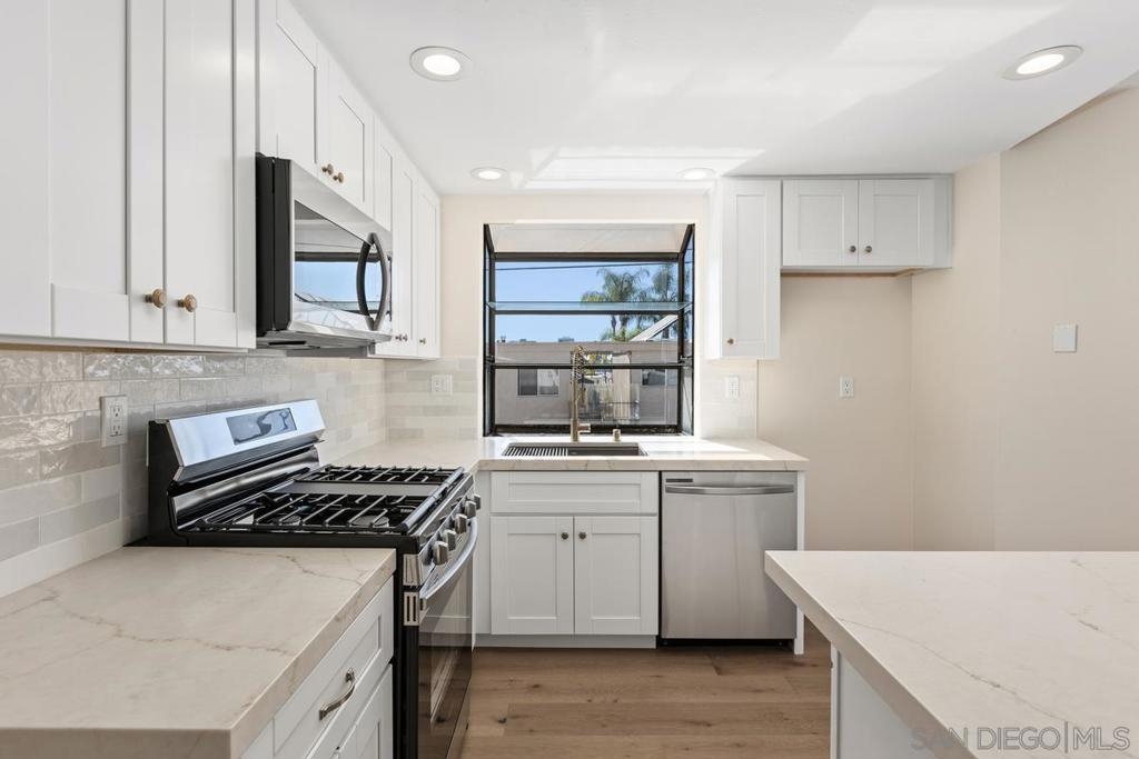 This is the one you have been waiting for! Lower beautifully remodeled corner unit with lots of natural light. This unit boasts real natural distressed floors, tastefully remodeled kitchen and baths. Master bedroom has walk in closet, double vanity and New mini split HVAC system. This home has in unit washer/dryer, private patio, cozy fireplace, one car garage/plus space behind. Great location within walking distance to all North Park has to offer! Equipment: Garage Door Opener Sewer: Sewer Connected Topography: GSL