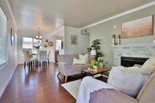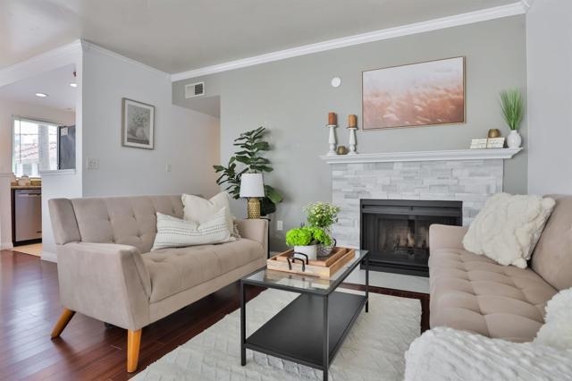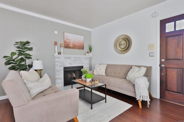 The first rule of real estate is location and the location of this gated community is prime! Less than one block from University Ave and all of its coffee shops, eateries and entertainment. One block to the North Park Community Park, easy freeway access and just 5 blocks to Morley Field. The second rule of real estate is layout and this one is ideal. Two large bedrooms (large enough for king size beds) and two full bathrooms that have been updated. The primary suite has a large walk-in closet with custom cabinetry. Most of the home has solid surface flooring, there is a fireplace in the living room and there is great natural light throughout. This top floor/end unit has it all. Granite countertops, stainless steel appliances, central heating and cooling, in unit washer/Dryer and an assigned parking space. Contact us today to schedule your private showing.