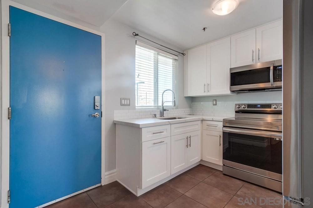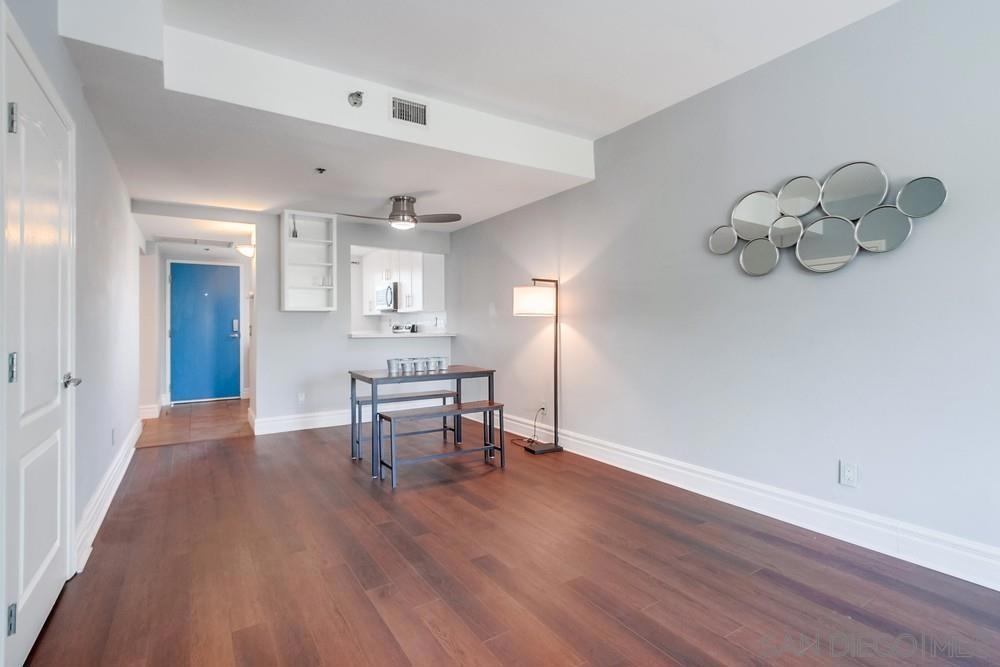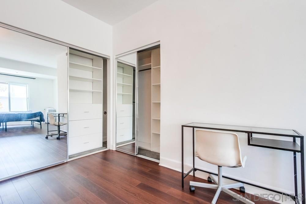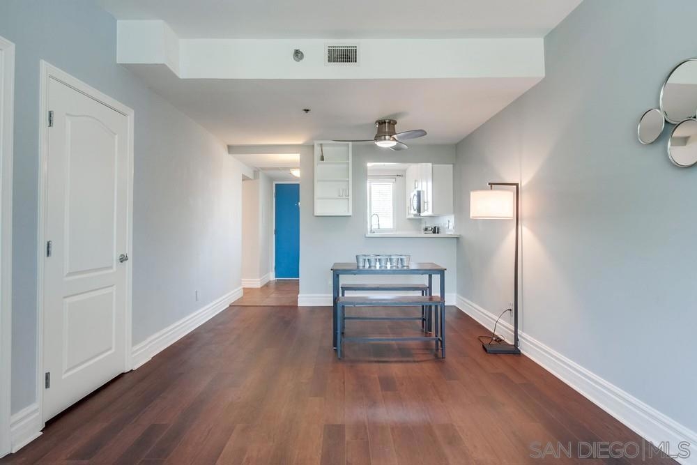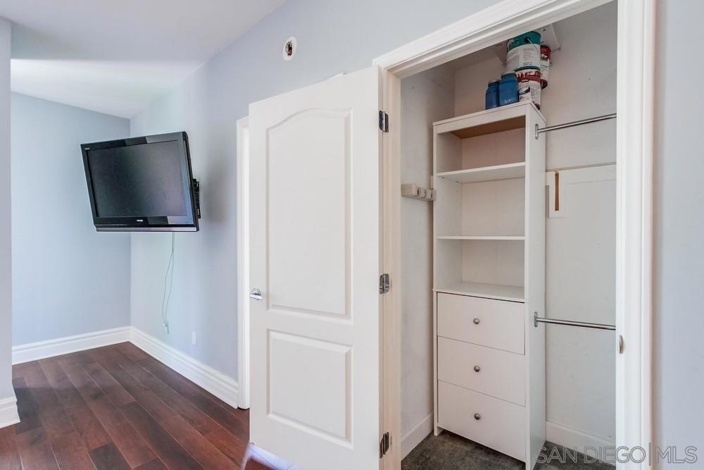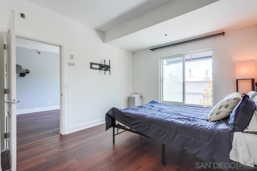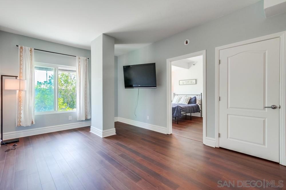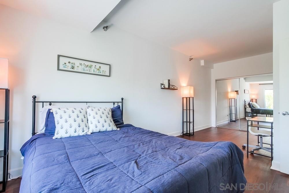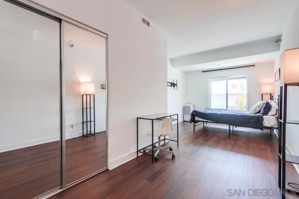 Beautiful, very rarely available EXTRA-LARGE 1 Bedroom unit at sought after Palisade Gardens, a gated and secure building. Lovely remodeled Kitchen with stainless steel appliances, including refrigerator, range and microwave. New quartz counter tops. Cute faux backsplash. The bedroom is enormous at 22x10 and features TWO spacious closets with built-ins. Modern bathroom with above counter sink basin. Large Living Room and Dining Room areas. New gorgeous wood floors. Recently painted. Dedicated underground parking space #29, accessible by Owners-Only drive through gate. A 4-minute walk to the hip hip hip center of North Park at 30th and University. You'll enjoy all the fabulous cuisine, beer and coffee you can possibly consume in one of the most desired neighborhoods in San Diego! Great artisan small-business-oriented shopping in an exciting, eclectic and electrifying community. And as a sociological counterweight, you're also just a very short walk to Target! Portable air-conditioning unit which cools the entire property conveys as do 2 TV mounting brackets and 1 flat screen TV, already installed.