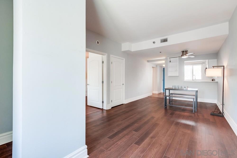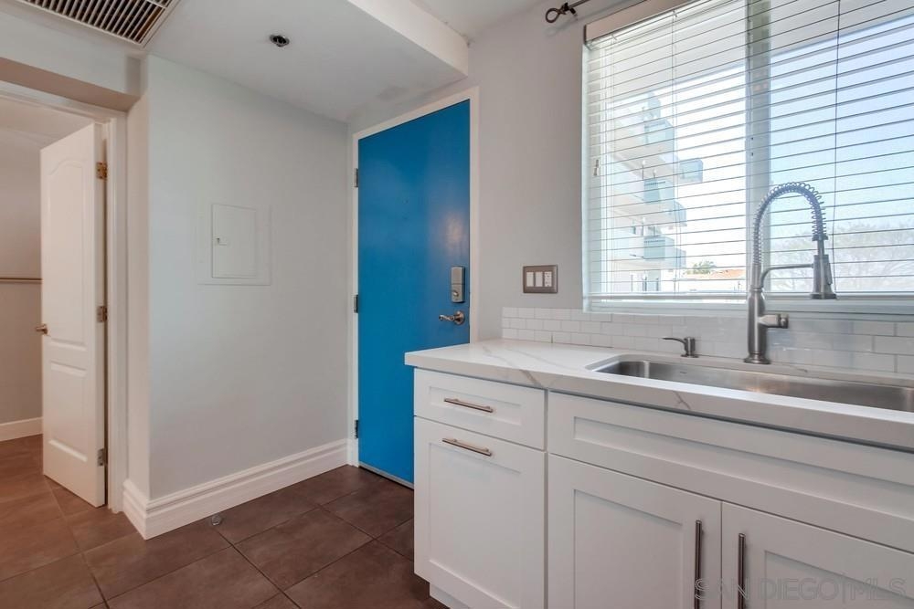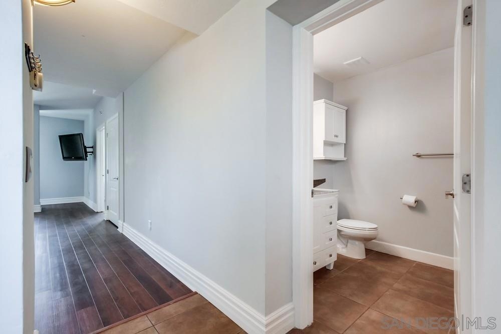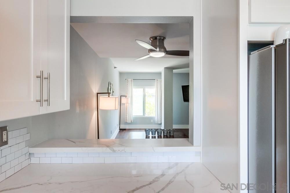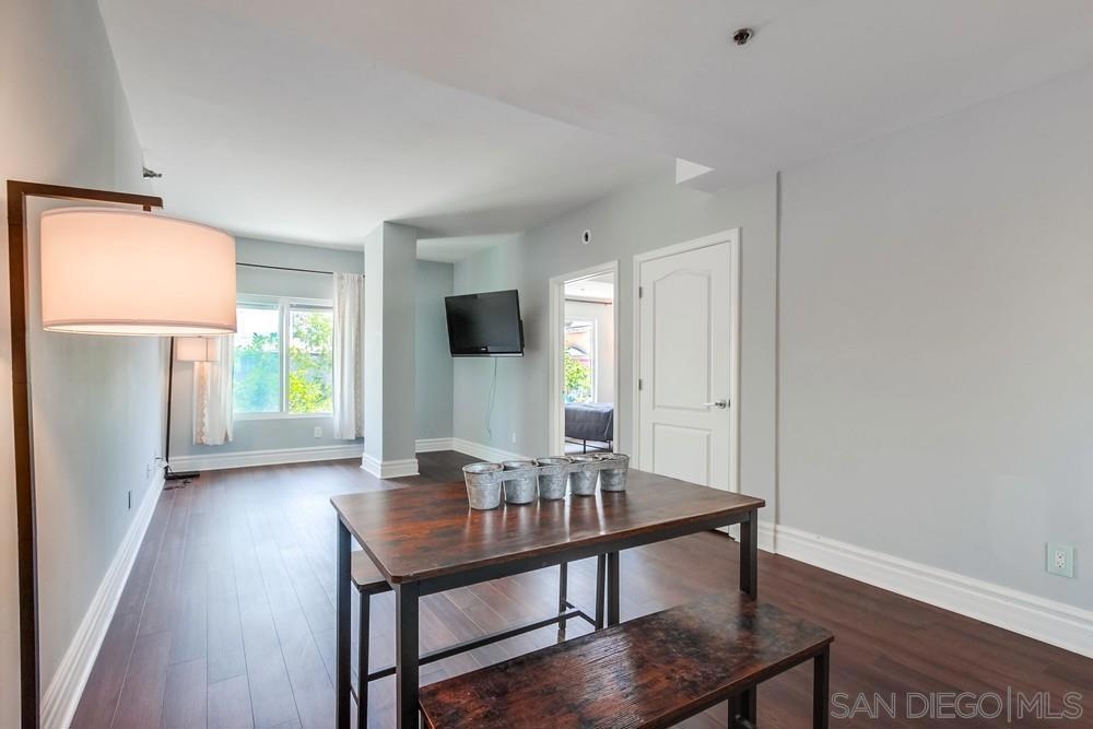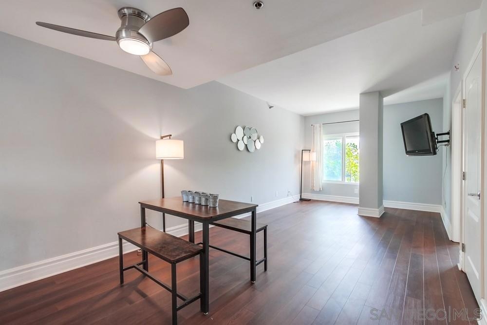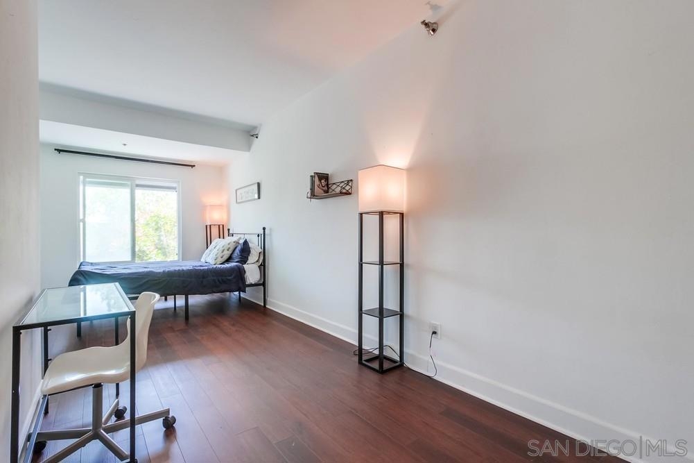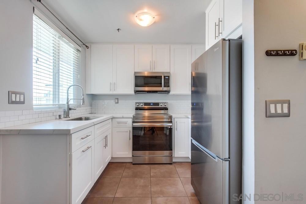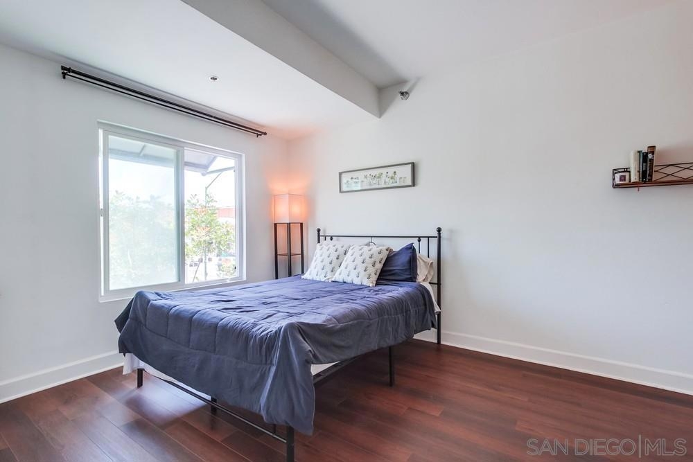 Beautiful, very rarely available EXTRA-LARGE 1 Bedroom unit at sought after Palisade Gardens, a gated and secure building. Lovely remodeled Kitchen with stainless steel appliances, including refrigerator, range and microwave. New quartz counter tops. Cute faux backsplash. The bedroom is enormous at 22x10 and features TWO spacious closets with built-ins. Modern bathroom with above counter sink basin. Large Living Room and Dining Room areas. New gorgeous wood floors. Recently painted. Dedicated underground parking space #29, accessible by Owners-Only drive through gate. A 4-minute walk to the hip hip hip center of North Park at 30th and University. You'll enjoy all the fabulous cuisine, beer and coffee you can possibly consume in one of the most desired neighborhoods in San Diego! Great artisan small-business-oriented shopping in an exciting, eclectic and electrifying community. And as a sociological counterweight, you're also just a very short walk to Target! Portable air-conditioning unit which cools the entire property conveys as do 2 TV mounting brackets and 1 flat screen TV, already installed.