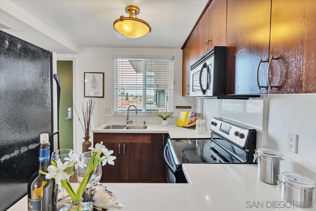 Live in the heart of San Diego's most desired neighborhoods, North Park. This freshly updated 1 bed/1 bath condo has a great floorplan/layout that boasts a modern kitchen with quartz counters, stainless steel appliances, a large walk-in closet in the bedroom, and an oversized patio with amazing views for miles! Palisade Gardens is a secure building with a great rooftop area and is located just steps away from all the bars, shops and restaurants that make North Park so special! One secure assigned parking spot included! Equipment: Fire Sprinklers,Garage Door Opener Sewer: Sewer Connected Topography: LL