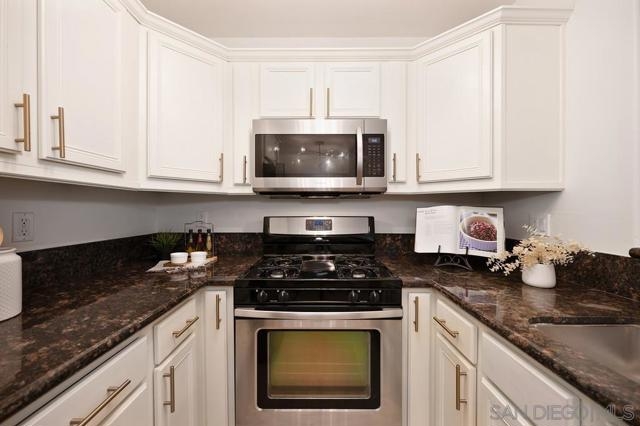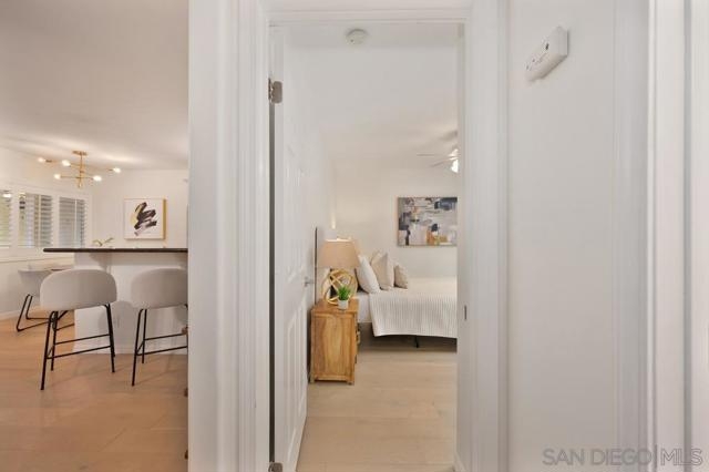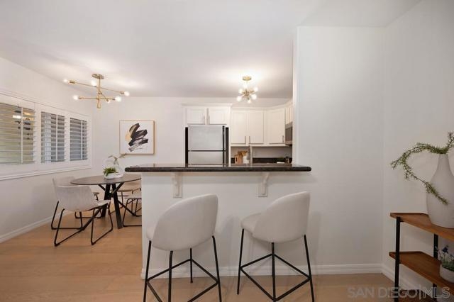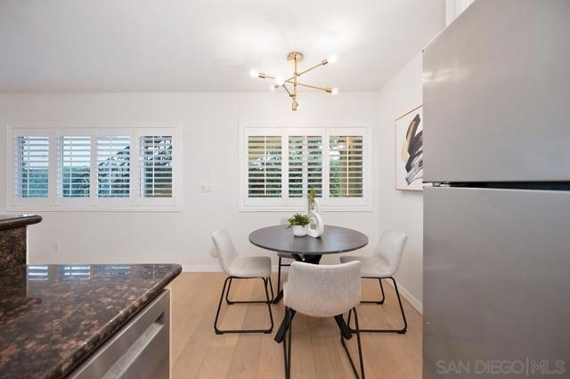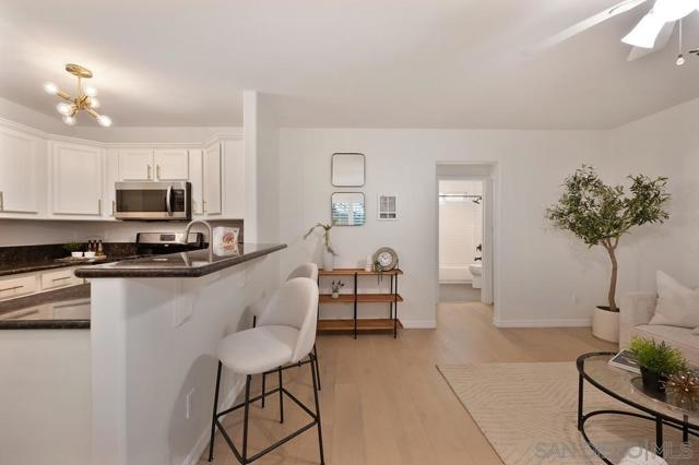 Beautifully updated first-floor unit features refreshing color palett that lends a crisp and clean feel to the space, complemented by beautiful floors in a neutral tone. Designer midcentury light fixtures add a touch of glamour, while the fully remodeled kitchen boasts generous cabinets, granite counters, and stainless steel appliances. High-end plantation shutters in the living and dining area bring sophistication and comfort to the open floor plan and a stacked indoor laundry adds convenience. The spacious master bedroom includes a sunny patio area, and the fully remodeled en-suite bathroom features a contemporary vanity, tub/shower combination, round mirror, and updated light fixtures. Access to the New Orleans-style Palisades complex is through a security gate leading to a tree-lined courtyard. The affordable Homeowners Association fee covers water, trash, and building maintenance, and one assigned parking spot is included. This home has been thoughtfully upgraded and lovingly maintained, making it a must-see property.