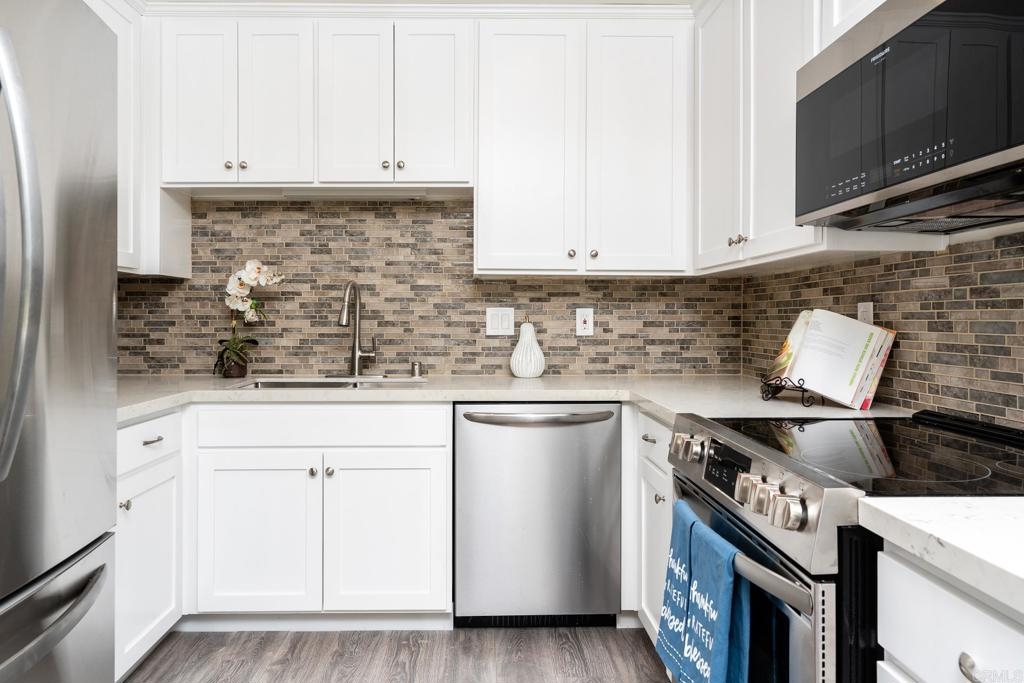 Completely remodeled condo in the heart of North Park. Ideal location near community park, restaurants, entertainment, & shopping. New modern Kitchen & Bathrooms, New Plank Flooring & Paint, New Interior Doors. New stainless appliances including French Door Refrigerator, Dishwasher, & 5 Burner Range. Modern master suite offers a spacious double vanity and large closet. Water, Sewer, Trash Disposal, & Water Heating included in HOA dues.