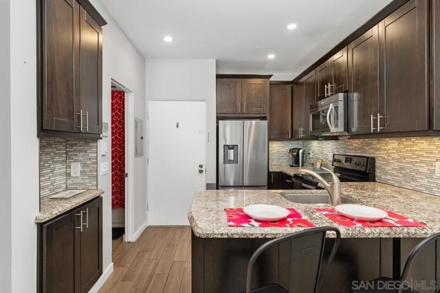 This immaculate TOP FLOOR studio in desirable North Park community offers a bright, open space. Updated flooring, stainless steel appliances and granite countertops make this cozy space a perfect nest to come home to at the end of a long day. Sip your morning coffee on the private balcony with a brand new sliding door and enjoy views to the north and east. Just outside your door, walk to shops, restaurants, Balboa Park, the world famous San Diego Zoo and more! Convenience is key with in-unit washer/dryer, assigned underground parking, and elevator access for easy mobility. This condo offers a perfect blend of comfort, style, and practicality, making it an ideal urban retreat. Welcome to this stylish and modern condo located at 3760 Florida St in San Diego, CA. This lowrise building offers a chic urban lifestyle with a northern exposure that bathes the unit in natural light. Measuring 336 square feet, this contemporary condo features a well-designed layout with a versatile space that can be personalized to suit your needs and one full bathroom. The interior is illuminated by recessed lighting, creating a warm and inviting ambiance. The kitchen is equipped with a convenient breakfast bar, perfect for casual dining and entertaining. Step outside onto the private balcony to savor the fresh air and admire the scenic views. Additionally, residents have access to a communal spa/hot tub, common courtyard, and common patio, providing ample opportunities for relaxation and socializing. Convenience is key with in-unit washer/dryer, assigned underground parking, and elevator access for easy mobility. This condo offers a perfect blend of comfort, style, and practicality, making it an ideal urban retreat. Don't miss the chance to experience the allure of this modern condo and all the amenities it offers. Contact us today to schedule a viewing and make this contemporary urban oasis your new home.