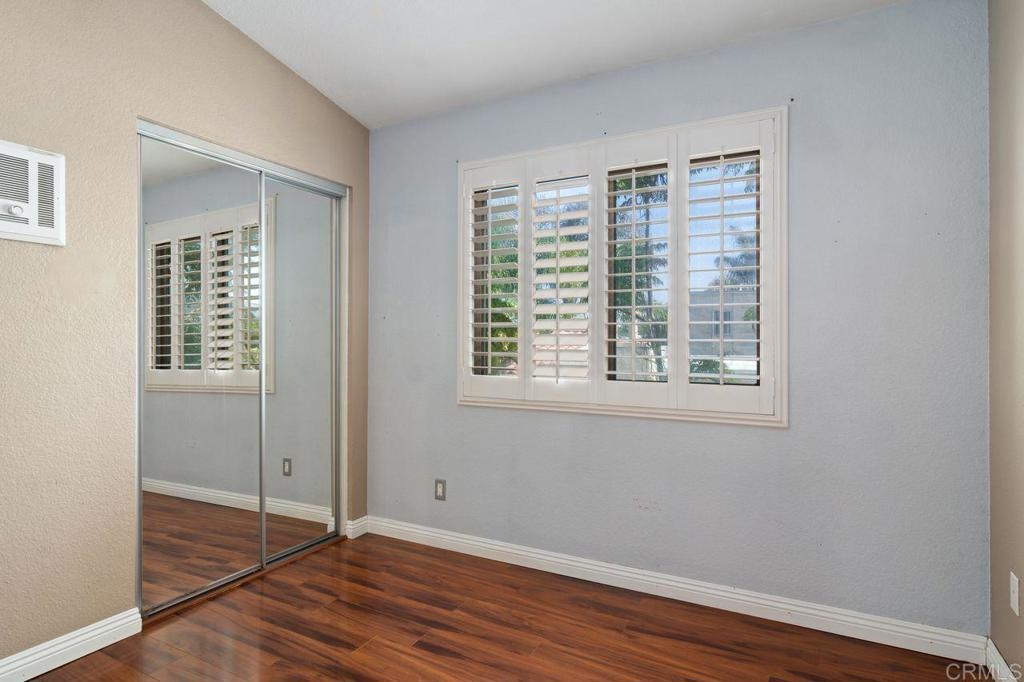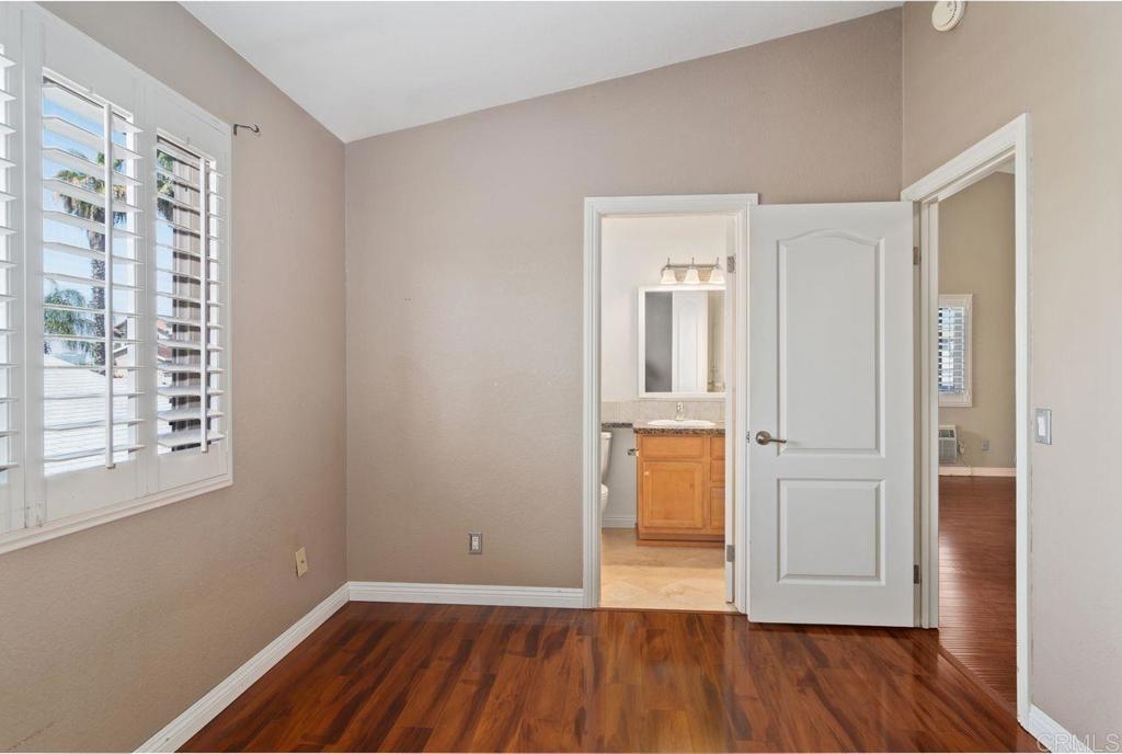 This upper level condo features three bedrooms and two baths. Largest unit in this 7 unit complex. Light and bright and a well designed layout. Vaulted ceilings throughout which makes it feel spacious. Kitchen and bathrooms have maple cabinets, granite countertops and upgraded flooring. Fireplace and wet bar the living room as well as a balcony. Plantation shutters on the dual paned windows. Also included is a one car garage and tandem driveway parking spot. Gated entry into the complex. Close to shopping, restaurants, schools and easy access to the 805 & 15 freeways.