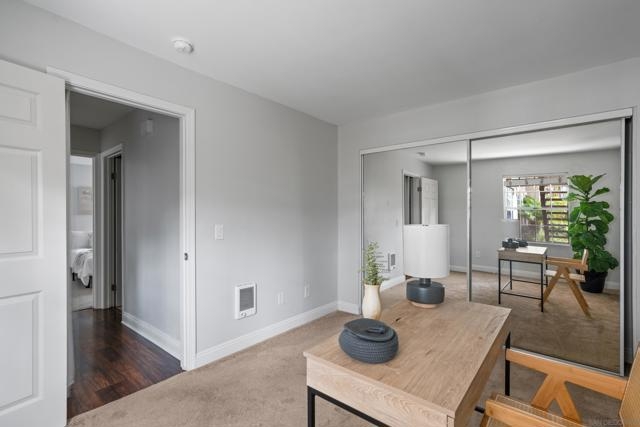 This stylish and contemporary 2-bedroom, 2-bathroom condo offers a perfect blend of modern living and convenience. Step into the open living space, featuring chic design elements including laminate flooring, crown molding and arched doorways. The spacious bedrooms boast comfortable layouts and generous closet space, providing a retreat for relaxation. The well-appointed kitchen is equipped with stainless steel appliances and ample cabinet and counter space. Enjoy the convenience of an in-unit laundry. Step outside to your private balcony, a perfect space for morning coffee. Additional highlights include designated parking & storage closet, a secured entry, and meticulously kept communal spaces. This condo is situated in a prime location, offering easy access to the vibrant culture and amenities of North Park. Explore the eclectic mix of restaurants, boutiques, and entertainment options just steps from your door. Commuting is a breeze with nearby access to major highways, providing quick connections to downtown San Diego and beyond.