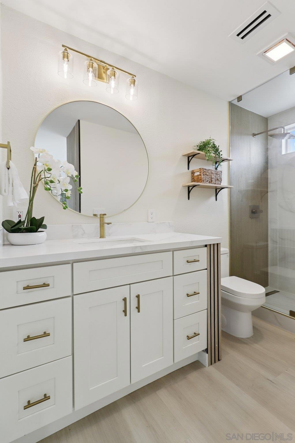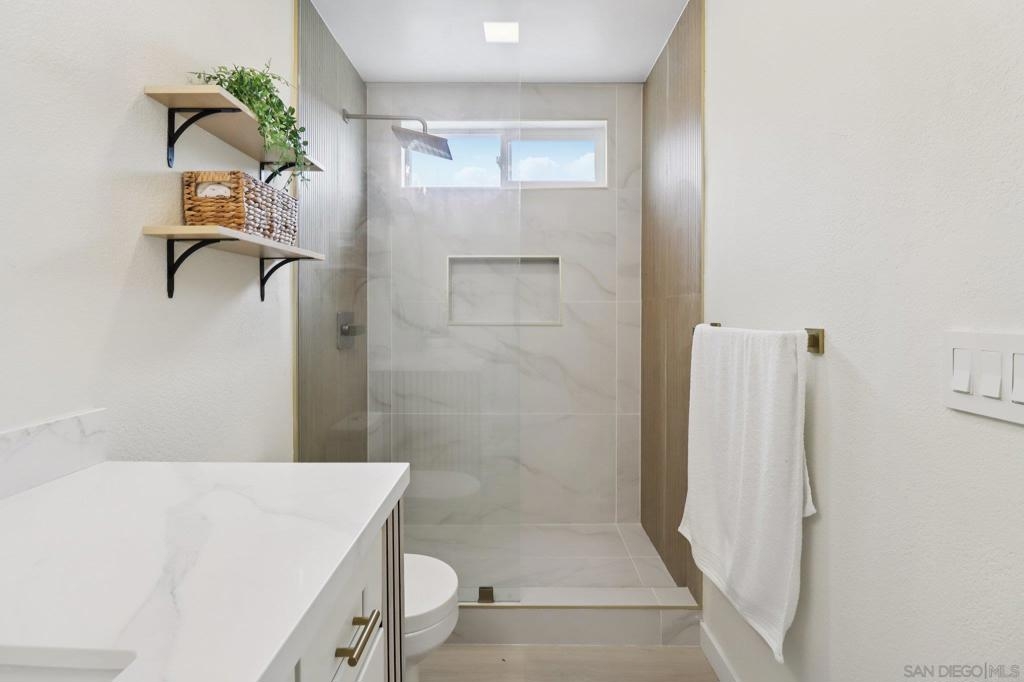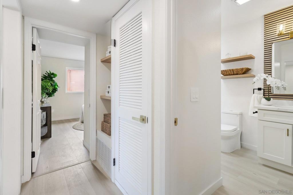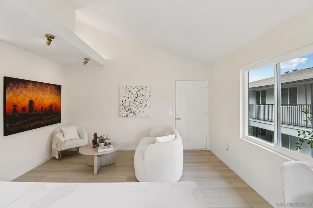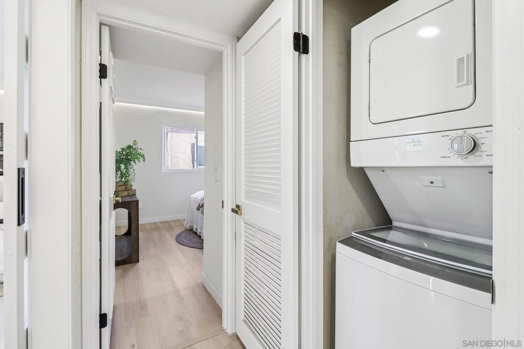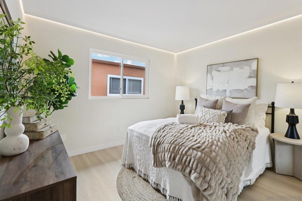 Top-Floor 2B|2BA North Park Stunner | Private Patio • Skylight • Garage + Parking Welcome to 4043 Utah St #8 — a bright, top-level end unit privately situated at the back of the complex with no neighbors on 3 sides or above. Bathed in natural light from multiple exposures and a skylight, this North Park condo lives like a peaceful retreat in the heart of the city. Inside, enjoy new luxury LVP flooring, a cozy fireplace, and a seamless open floor plan that connects the living area to your own oversized private patio with decking—accessible from both the kitchen and the primary bedroom suite. This rare outdoor space is perfect for lounging, entertaining, gardening, or enjoying warm San Diego evenings. The kitchen has been tastefully updated with waterfall-edge countertops, sleek cabinetry, and modern appliances. Full hvac unit ensuring comfort all year round, while in-unit laundry adds everyday ease. The primary suite is spacious and tranquil, enhanced by soft natural light and direct patio access. The bathroom and layout offer functional flow with plenty of storage. Outside, you’ll enjoy an attached garage with rear gate access, plus a second reserved parking space directly in front of the garage—a coveted bonus in North Park.