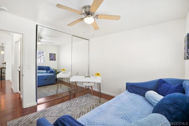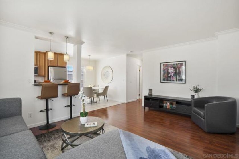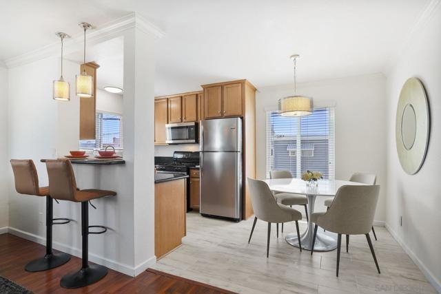 Unbeatable location in North Park! Top floor, end unit with only one shared wall. Spacious and light 2-bedroom, 1-bath with detached garage!! This home offers recent upgrades including all new paint, lighting and bathroom vanity. Open concept floorplan for entertaining. Modern kitchen with gas cooking, breakfast bar and beautiful tile floors. All the conveniences you want with AC and laundry in unit. Detached garage has additional storage cabinets. Front balcony. Gated community with low HOA only $268 per month. Quiet location but in the heart of all that North Park has to offer—trendy restaurants, shops, banks, and live music venues. With easy access to downtown, Mission Valley, and major freeways, this condo combines comfort, convenience, and a highly desirable location.