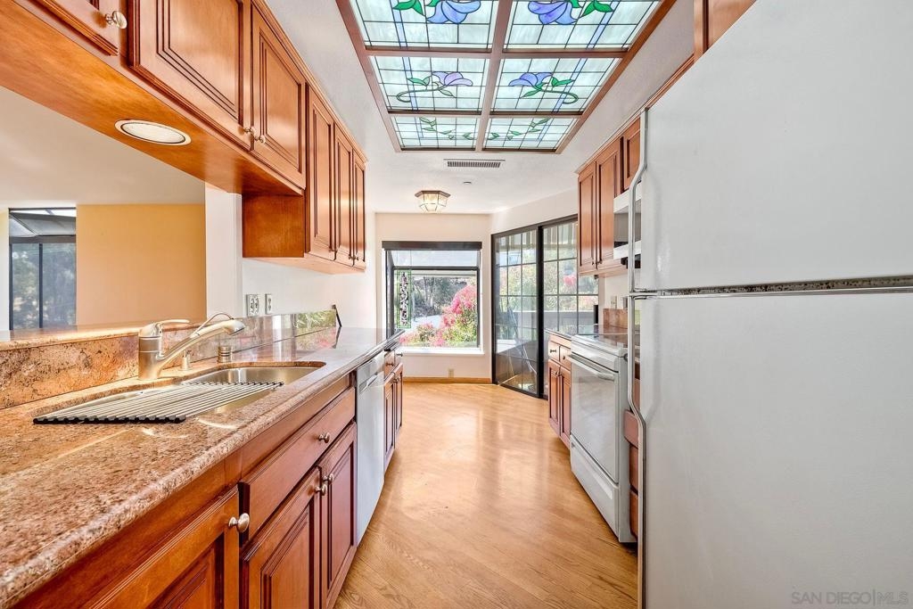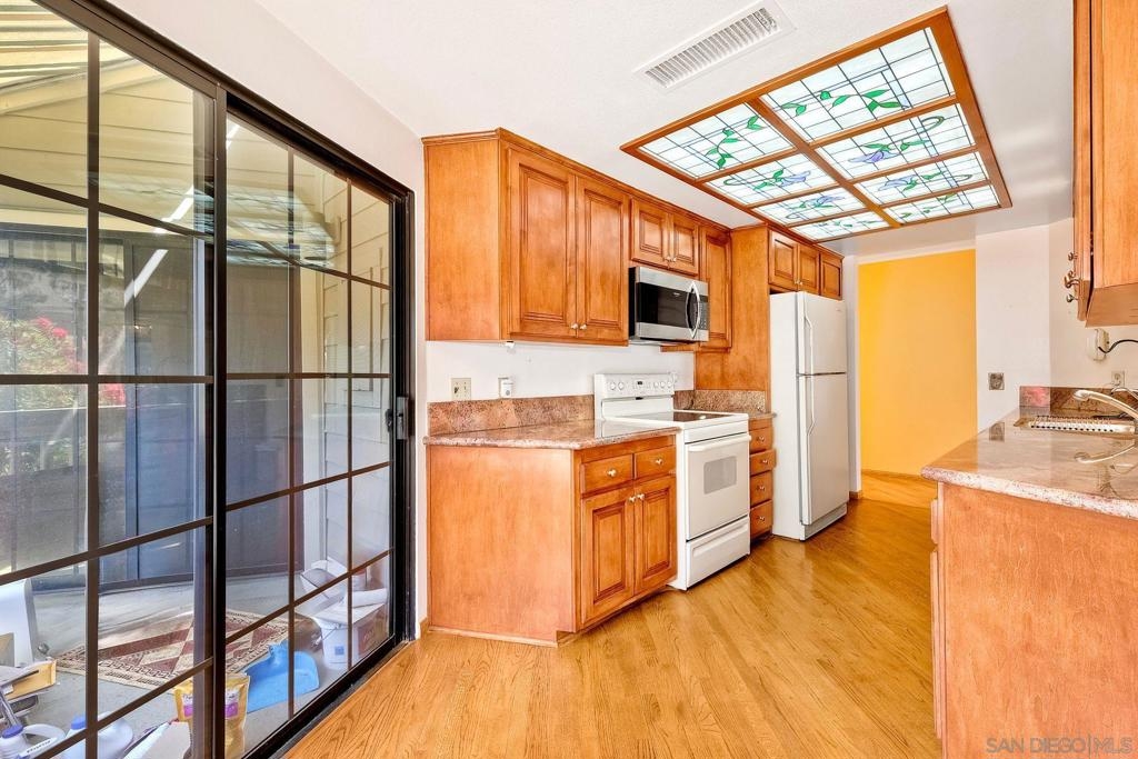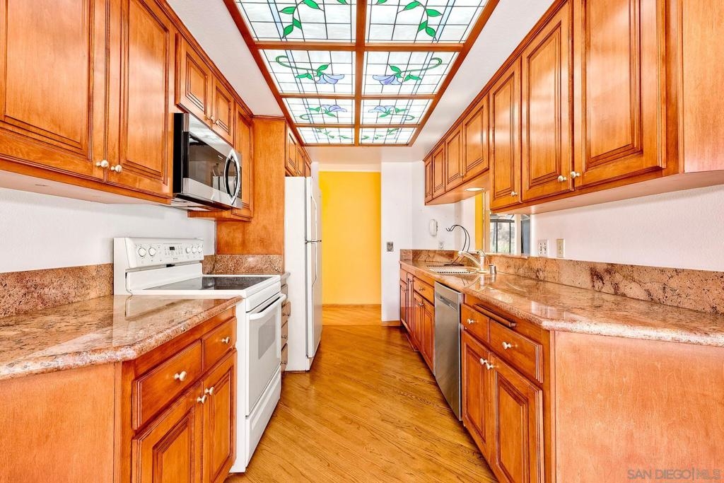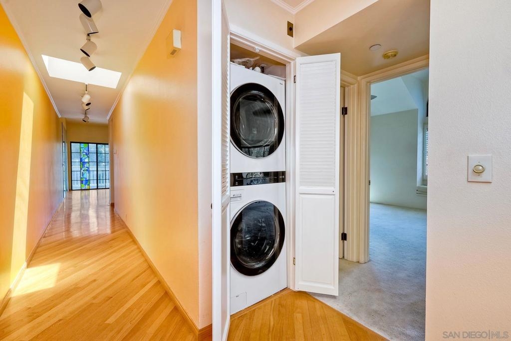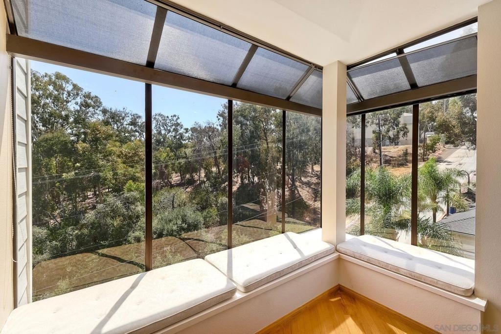 Stunning penthouse located on Balboa Park with southwest exposure and canyon/tree top views. This 2 bedroom/2 bath corner unit has over 1,400 sq.ft., two balconies, two underground gated parking spaces and private storage. Top floor amenities include vaulted ceilings, skylights, private attic area & built in bedroom cabinets. Expansive primary suite with walk in closet, dual sinks and soaking tub. Guest bedroom w/ balcony access & hidden closet(behind built in cabinets!) Loads of natural light with atrium style windows in the living room-perfect for lounging next to the fireplace. Hardwood floors in several rooms with a bright foyer and full sized laundry in closet. Kitchen has been tastefully updated and features a welcoming nook area with balcony access. Stay cool with the canyon breezes, or turn on your air conditioning for those toasty summer days.