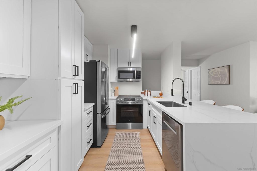 Welcome to this newly renovated condo! Thoughtfully remodeled with a modern design, it does not disappoint with beautiful countertops, cabinets, flooring, and all new appliances. The contemporary light fixtures and cozy fireplace brings the home together with character. Enjoy resort-style living with community amenities including a swimming pool, spa, tennis courts, fitness center, clubhouse, outdoor grills, and picnic areas. Ideally located near major freeways, trolley stations, Snapdragon Stadium, Mission Valley malls, and close to USD, SDSU, SeaWorld, Mission Bay, Old Town, and Downtown San Diego. Don't miss out on this delightfully charming home!