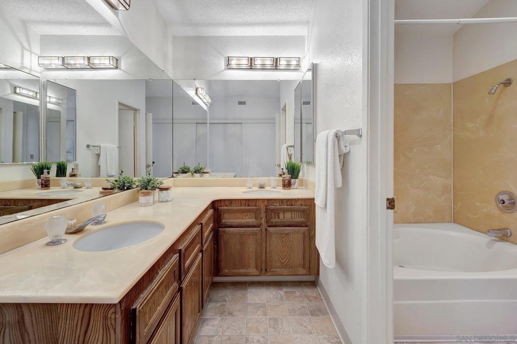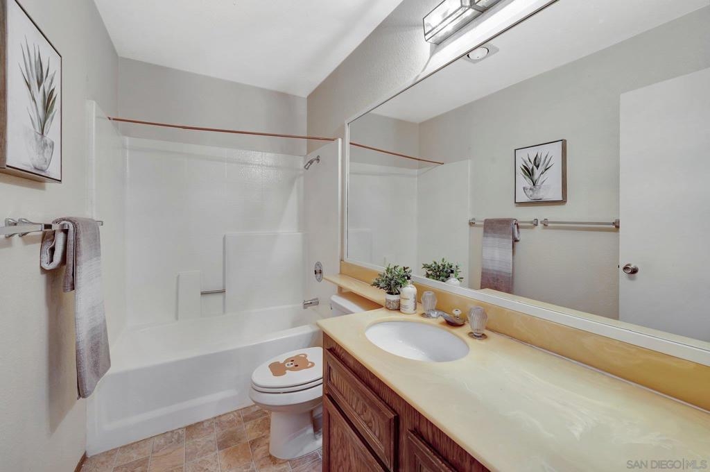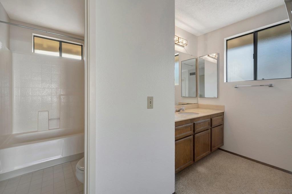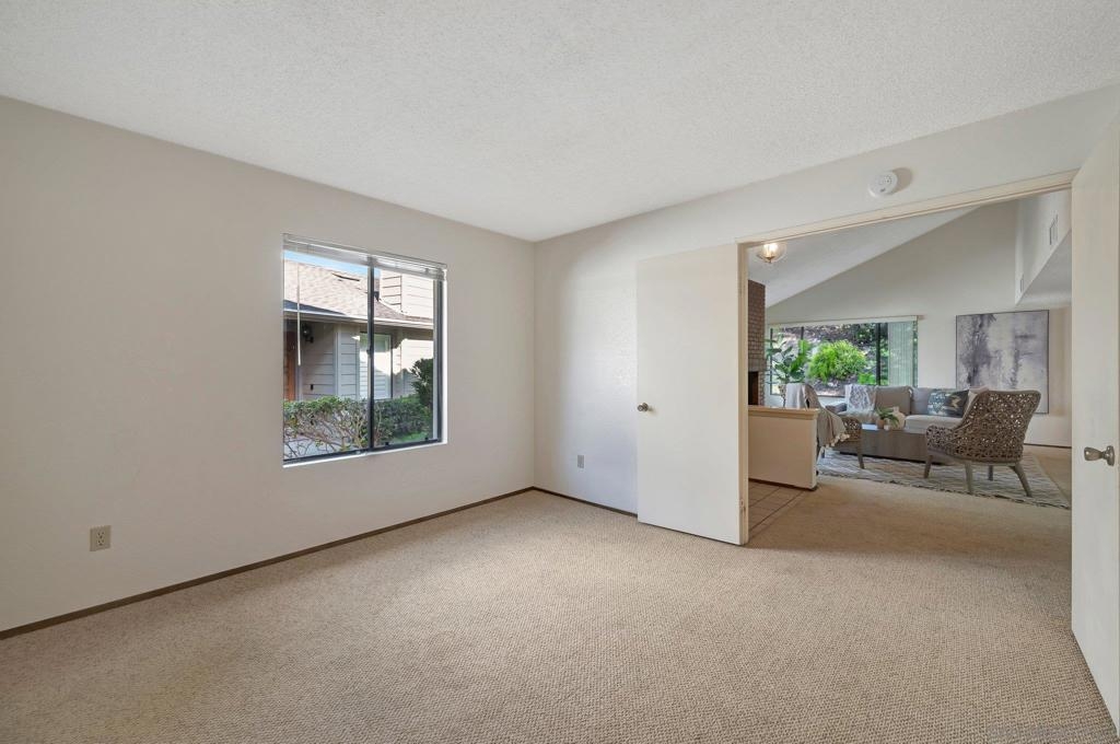 'Turn-key' 3BR/ 3BA townhome in extremely desirable Glenwood Springs of Scripps Ranch! Unit features a 2-Car attached garage w/ full-size indoor laundry room for convenience & sits on one of the best locations in the complex along a private greenbelt for a quiet, parklike feel. Unit was recently painted throughout the interior & boasts a great floor-plan w/ entry-level bedroom & full bath downstairs + DUAL master suites; 2 spacious bedrooms, each w/ its' own full baths upstairs! A newer HVAC system w/ gas furnace & A/C condenser offers central heating & cooling throughout the interior. Other features include a vaulted ceiling, fireplace in living room w/ a private patio (down) & master balcony (up) both backing up to the greenbelt for outdoor privacy that you'll absolutely love! A new roof for the structure was recently replaced by the HOA in 2023. The unit is very spacious, offering 1,668 sq/ ft. w/ plenty of storage & a large linen closet upstairs. This is one of the larger 3BR units you'll find in all of Scripps Ranch! Glenwood Springs features a clubhouse, pool/ spa, tennis/ sports courts & clubhouse for its’ residents. Located just walking distance to popular Lake Miramar where you can walk, jog or bike the trails, fish or just relax & enjoy the views. The complex is also located conveniently close by the Scripps Ranch Library, highly rated Scripps Ranch schools for all ages & nearly all neighborhood shopping & restaurants, grocery, entertainment/ theatre & with easy I-15 freeway access nearby! Won't last.