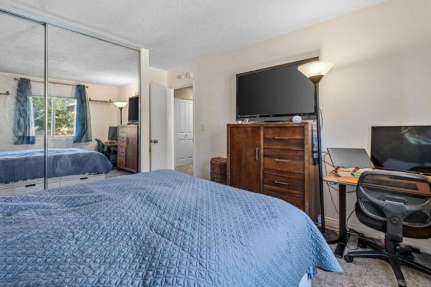 PRICE REDUCTION! 6 Months of HOA Dues paid by seller at COE! VA Approved Complex with Section 1 Clearance Already Completed! Welcome to this beautifully updated two-story home in Rancho Peñasquitos Villas III, nestled within the highly sought-after Poway Unified School District. Enjoy the convenience of three off-street parking spaces, a rare find! Inside, you’ll discover a spacious open-concept layout featuring two generously sized bedrooms and one full bathroom. Natural light pours in through large windows and a private balcony, creating a bright and inviting atmosphere. Modern upgrades throughout include automated window shades, updated lighting with dimmers, carpet less than two years old, a new water heater, and recently replaced dryer and stove. This move-in ready home truly has it all, a must-see opportunity!