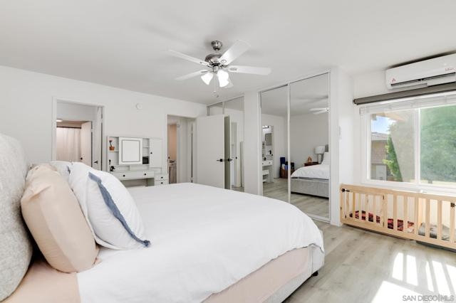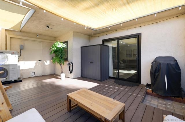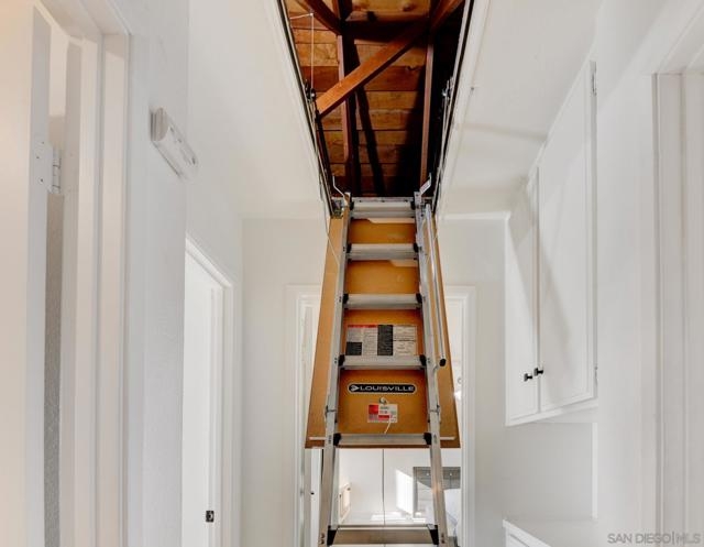 Completely upgraded 3 bed,1.5 bath townhouse, end-unit in Mission Valley! Gorgeous move-in ready townhome with attached deck, laundry room, brand new A/C & heating, brand new dual pane windows, custom cabinets with pantry wall and coffee station, quartz countertops, and high-end stainless steel appliances! Come fall in love with this open concept home. A large living room with a beautifull brick fireplace with wooden mantle and shelving over-looking the open greenbelt out your front door. Second floor features 3 large bedrooms: a large primary bedroom with ample closet space and custom shelving; 2 additional bedrooms with large closets overlook the green areas; large bath with dual sinks and full size bathtub, and bonus attic space for storage with pull down stair access. An additional half bath is located downstairs for convenience. This unit has it all! Centrally located, minutes SDSU, Fashion Valley, Friars Rd and to all Mission Valley has to offer. Truly a must see.
