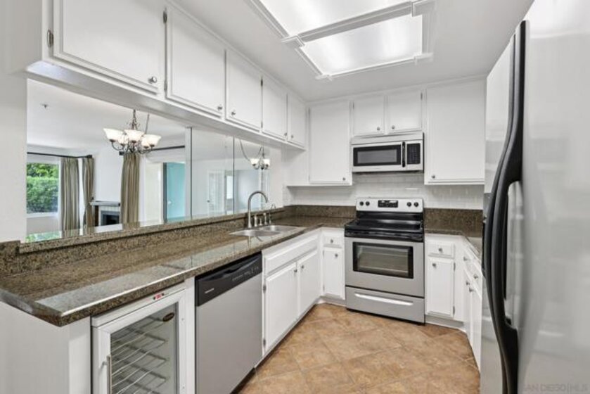 Located in the highly desirable community of Tierrasanta in San Diego, this beautifully updated 2-bedroom, 2-bathroom corner unit condo offers 1,118 sq ft of light-filled living space in a peaceful, park-like setting. Positioned to overlook a tranquil fountain and lush landscaping, this home provides exceptional privacy and a quiet atmosphere rarely found in condo living. Inside, you’ll find an updated kitchen with wine refrigerator and full-size refrigerator, fresh neutral paint, and modern easy-care flooring throughout. The spacious living room features a gas fireplace, creating a warm and inviting environment, while the functional layout includes optional IN UNIT LAUNDRY SPACE, a water filtration system, and additional patio storage. This home includes secure underground parking with assigned space, controlled access entry, and well-maintained common areas. The HOA delivers a truly resort-style, all-inclusive lifestyle, covering exterior building maintenance (including roofs, garages, and parking areas), landscaping, water, trash, recycling, gas for fireplaces, premium cable and high-speed internet (including HBO, Showtime, Cinemax, Disney, and streaming services), and 24-hour property management. Residents also enjoy access to a heated pool, spa, saunas, tennis and pickleball courts, BBQ areas, and multiple laundry facilities, along with an onsite maintenance technician and housekeeping services. Centrally located near shopping, dining, parks, hiking trails, and major freeways. Short drive to admiral Baker Golf course. Will sell fast!