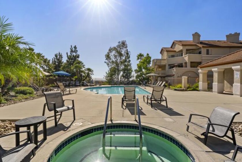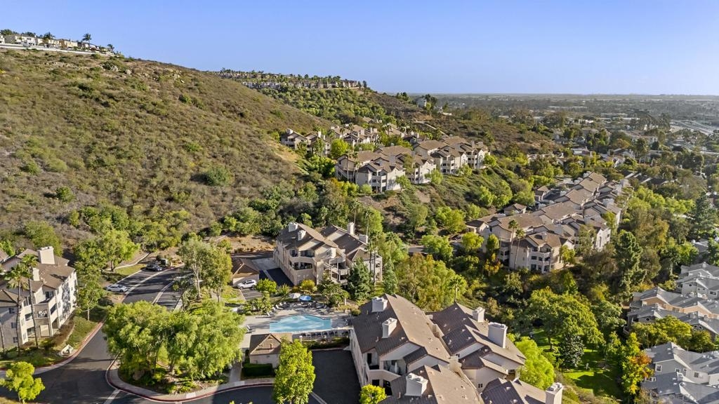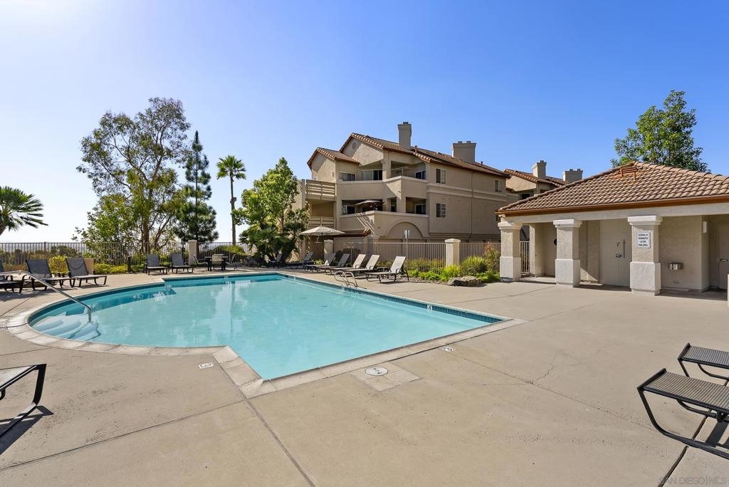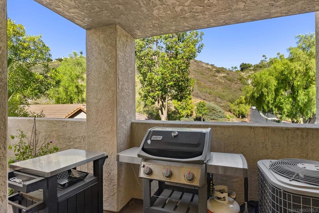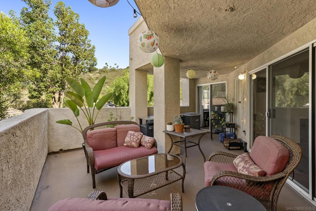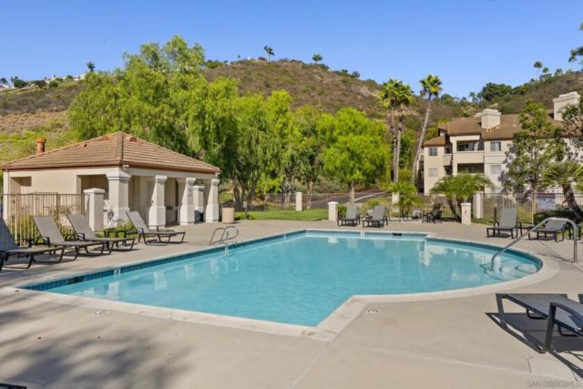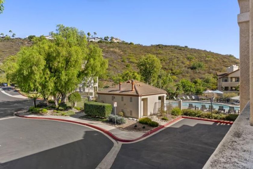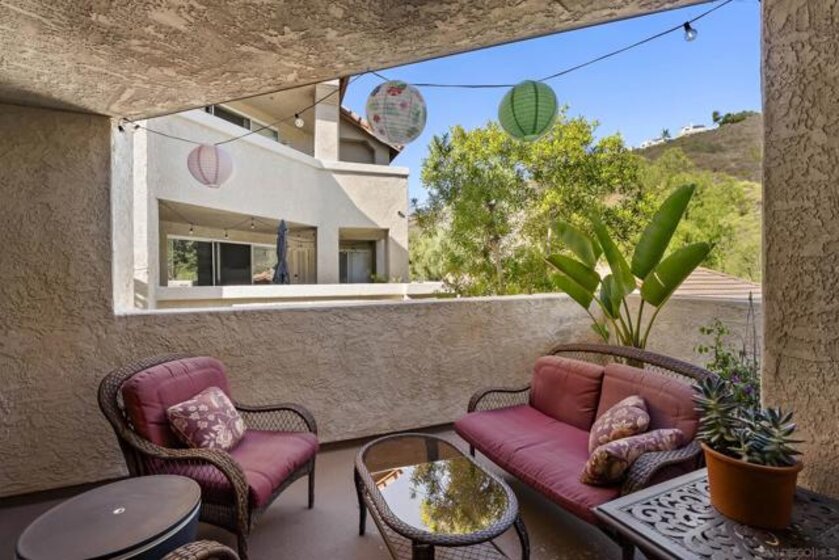 The absolute best location within the Affinity community in Scripps Ranch, this 2-bedroom, 2-bath condo with a coveted 2-car tandem garage combines privacy, upgrades, and lifestyle in one exceptional offering. Ideally situated next to one of the community pool and spa areas, yet tucked along the quiet side of the building. Enjoy hillside-facing eastern views with minimal freeway noise. With no one below and only one shared wall, the setting feels elevated and private. The residence also features (see suppl) one of the largest balconies in the complex, a true extension of your living space, perfect for BBQs, lounging, entertaining, or simply enjoying the peaceful outlook. Inside, fresh interior paint in a modern grey and white palette creates a light, welcoming feel. The fully remodeled primary bathroom offers a clean, spa-inspired retreat. The kitchen is equipped with stainless steel appliances, while the second bedroom features a tremendous built-in closet and drawer organization system with additional hanging space, maximizing functionality. Additional conveniences include central A/C and a full-size interior laundry area. The oversized 2-car tandem garage adds rare value and generous storage. Affinity residents enjoy resort-style pools and spas, beautifully maintained grounds, proximity to Lake Miramar trails, neighborhood parks, popular restaurants, everyday services, and easy freeway access. An ideal first-time buyer opportunity or perfect lock-and-leave home in one of Scripps Ranch’s most convenient communities.