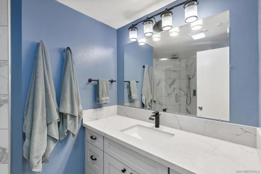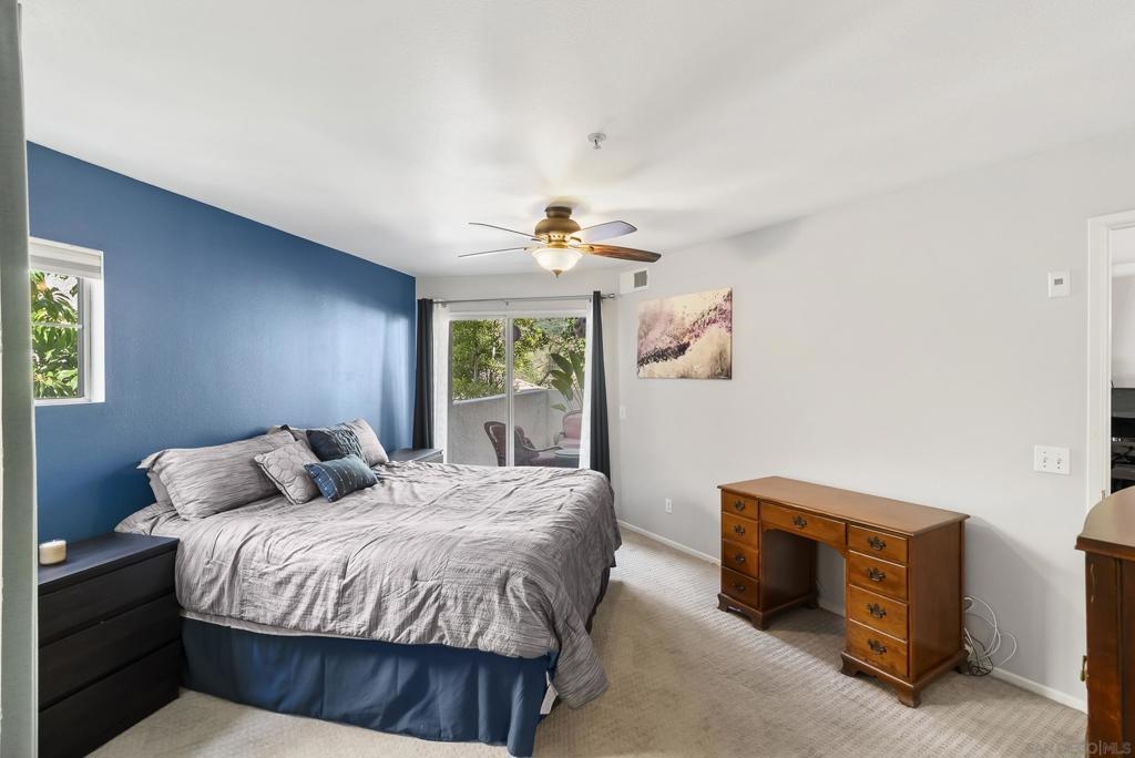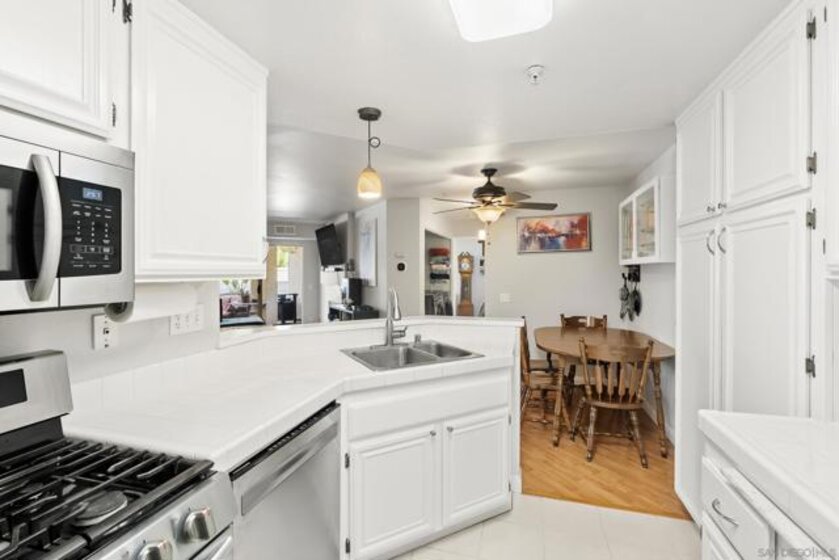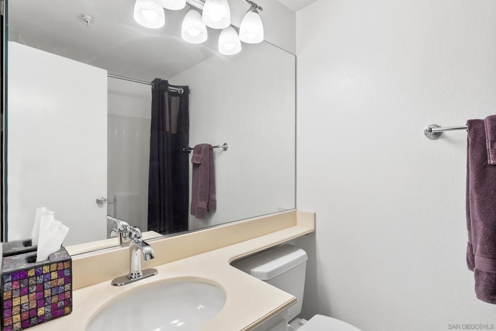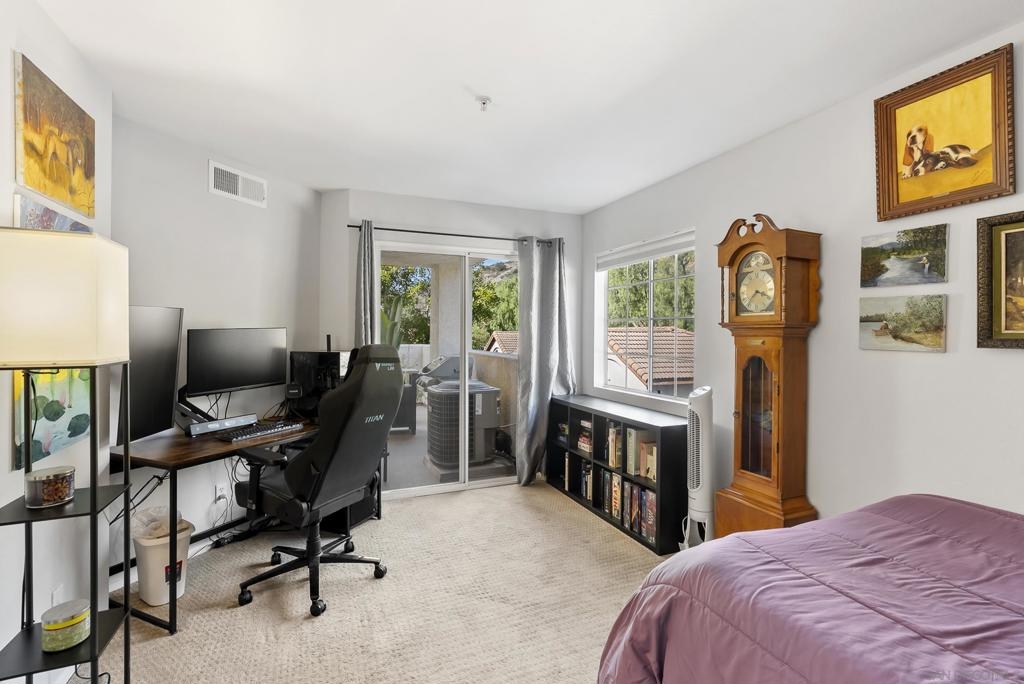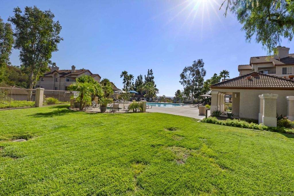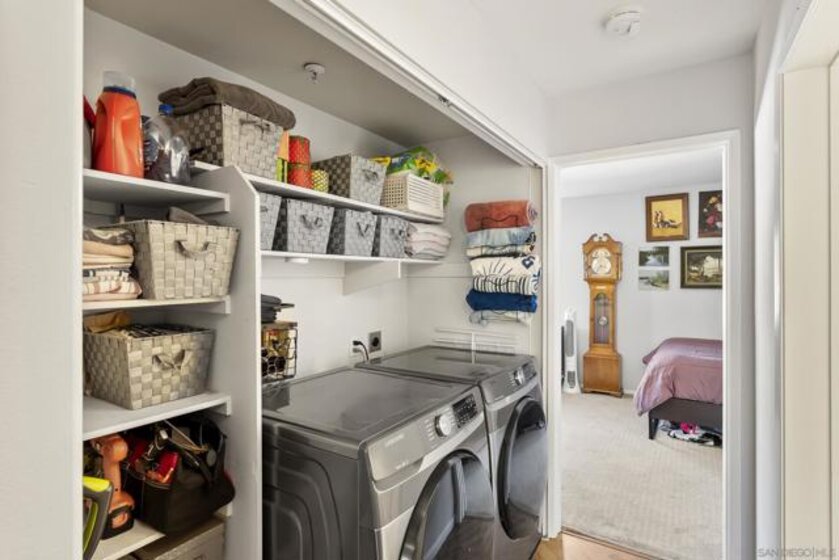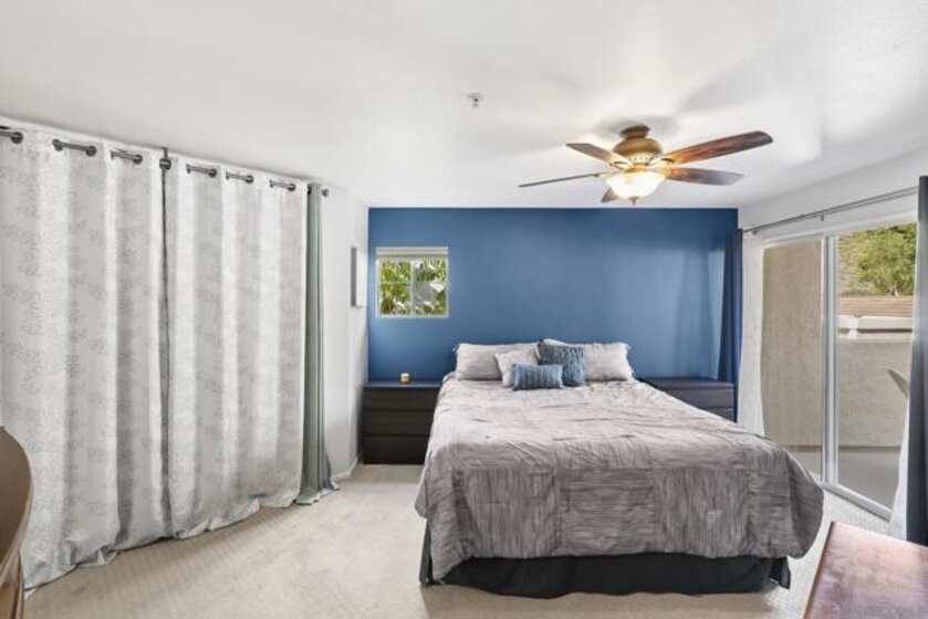 The absolute best location within the Affinity community in Scripps Ranch, this 2-bedroom, 2-bath condo with a coveted 2-car tandem garage combines privacy, upgrades, and lifestyle in one exceptional offering. Ideally situated next to one of the community pool and spa areas, yet tucked along the quiet side of the building. Enjoy hillside-facing eastern views with minimal freeway noise. With no one below and only one shared wall, the setting feels elevated and private. The residence also features (see suppl) one of the largest balconies in the complex, a true extension of your living space, perfect for BBQs, lounging, entertaining, or simply enjoying the peaceful outlook. Inside, fresh interior paint in a modern grey and white palette creates a light, welcoming feel. The fully remodeled primary bathroom offers a clean, spa-inspired retreat. The kitchen is equipped with stainless steel appliances, while the second bedroom features a tremendous built-in closet and drawer organization system with additional hanging space, maximizing functionality. Additional conveniences include central A/C and a full-size interior laundry area. The oversized 2-car tandem garage adds rare value and generous storage. Affinity residents enjoy resort-style pools and spas, beautifully maintained grounds, proximity to Lake Miramar trails, neighborhood parks, popular restaurants, everyday services, and easy freeway access. An ideal first-time buyer opportunity or perfect lock-and-leave home in one of Scripps Ranch’s most convenient communities.