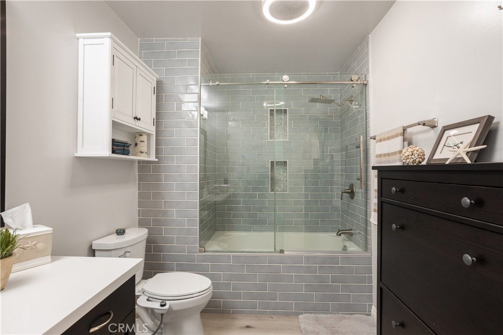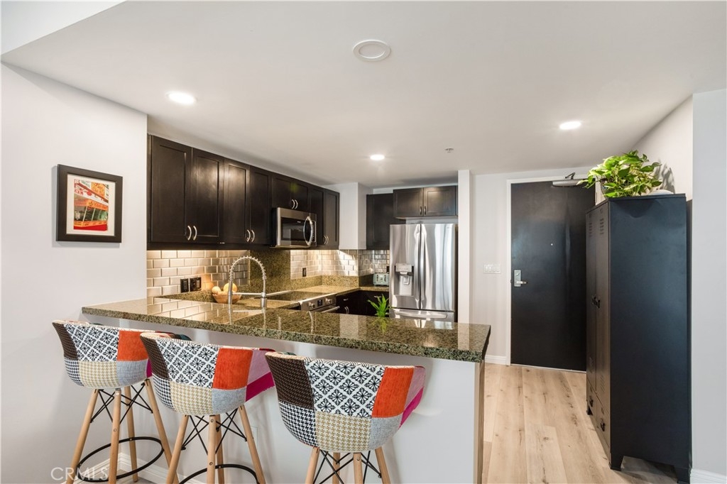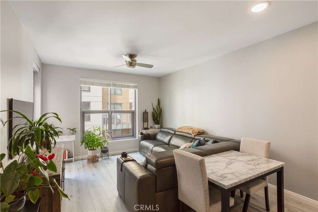 Discover your new sanctuary in this beautifully updated 5th-floor one-bedroom, one-bath unit located in the vibrant East Village. With an assigned dedicated parking spot in the attached garage, this spacious retreat offers the perfect blend of modern convenience and urban lifestyle. Step inside to find a light and airy living space enhanced by newly updated hardwood floors and designer paint colors that create a warm and inviting atmosphere. The seamless transition from the living room to the dining area makes it perfect for entertaining or relaxing after a busy day. The newly updated kitchen is equipped with stainless steel appliances, perfect for whipping up your favorite meals. Enjoy your morning coffee or unwind with a glass of wine on your private balcony, which overlooks the serene courtyard—an ideal backdrop for peaceful moments. Indulge in the spa-like bathroom, featuring a luxurious walk-in shower and a spacious vanity, designed for your comfort and convenience. Storage won't be an issue with an additional storage unit in the garage—a perfect spot for bikes and outdoor gear. The Metrome complex boasts a wealth of amenities including a well-equipped gym, a stylish recreation room, and a beautifully maintained Zen garden, ensuring you can unwind without ever leaving home. Located just steps away from Petco Park, the Thomas Jefferson School of Law, and an array of dining and shopping options, you'll enjoy the best of urban living at your doorstep. Plus, with trolley access nearby, the rest of downtown San Diego is right within your reach. Don’t miss out on this fantastic opportunity to own a slice of downtown living in a beautifully maintained condominium complex. Schedule your private tour today and imagine the lifestyle awaiting you!
