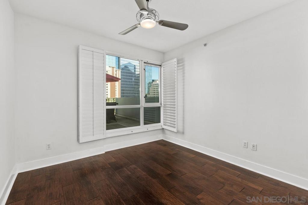 RARE OFFERING - Over 600 SF PRIVATE DECK with Iconic City Views. An extraordinary opportunity to own a condo with an expansive 600 plus square foot private deck - large enough to comfortably entertain 20 guests and nearly doubling your living space. This exceptional outdoor retreat offers sweeping city views, beautiful sunlight throughout the day, and ample room to create a custom outdoor oasis, including the potential for raised herb or garden planters. Ideally situated on iconic India Street in the heart of the Columbia District, this home provides effortless access to the Coaster and train station, along with vibrant dining, waterfront paths, and city conveniences just moments away. Including the new Whole Foods which will be open in the Spring. Inside, the residence is light, bright, and thoughtfully designed with an excellent floor plan tailored for entertaining. Highlights include hardwood floors, a stacked-stoned fireplace, and an open concept kitchen that flows seamlessly into the living area. A full size washer and dryer add everyday convenience. The Treo building is known for its low HOA fees while still offering an impressive suite of amenities: 24-hour security, underground private parking, a resort-style pool and jacuzzi, a fully equipped gym, and dedicated bike and storage options - perfect for an active, urban lifestyle. Homes with this level of private outdoor space, location and amenities rarely come to the market. This is truly a one of a kind offering.