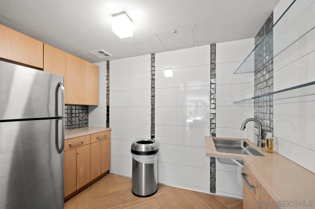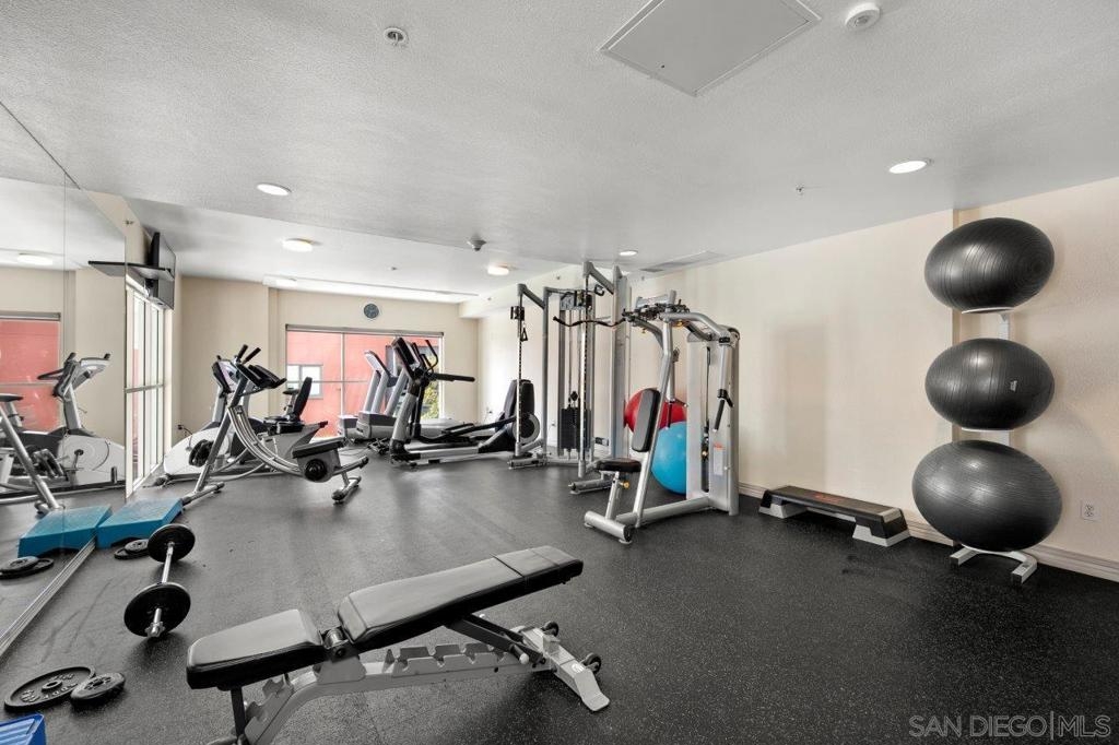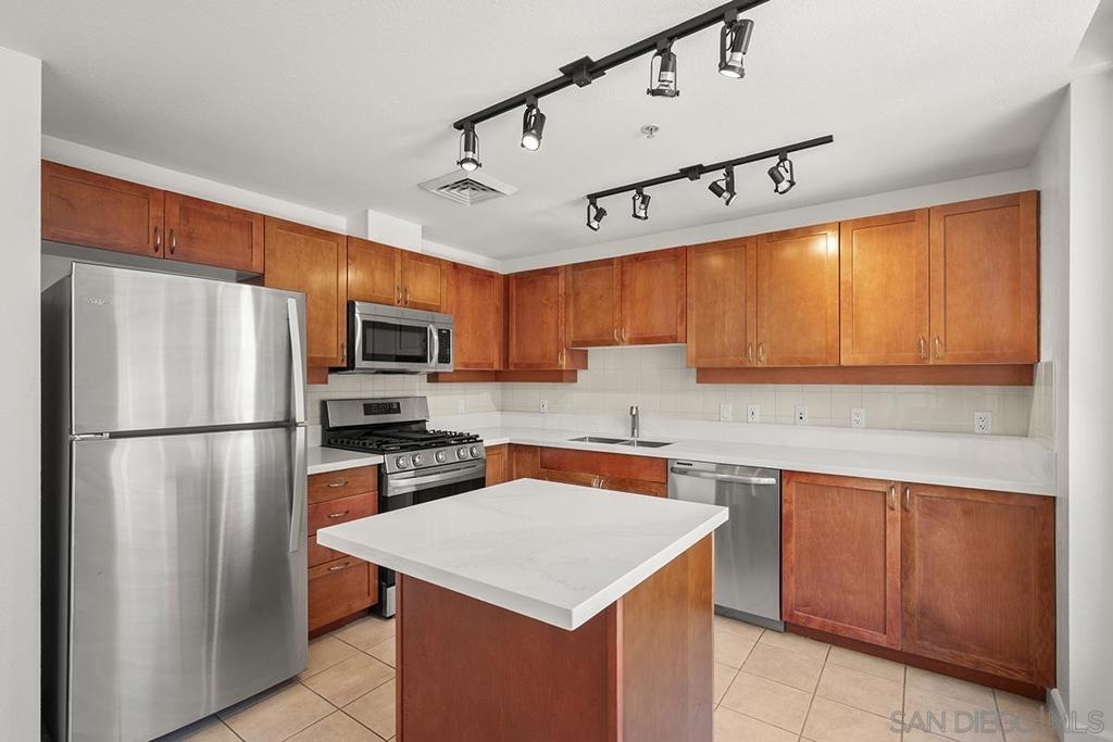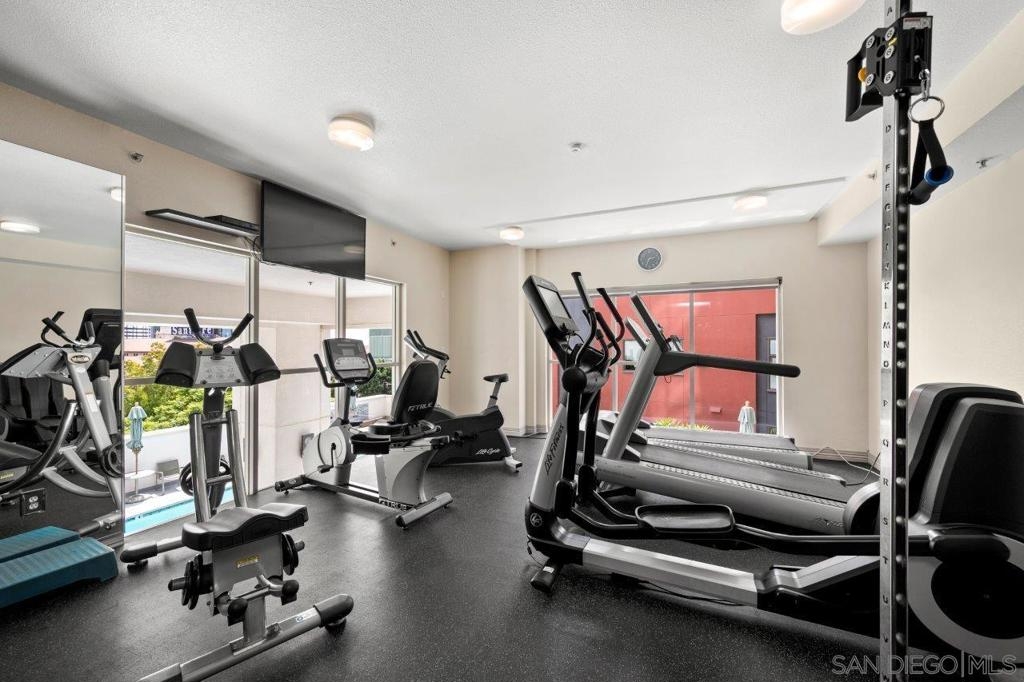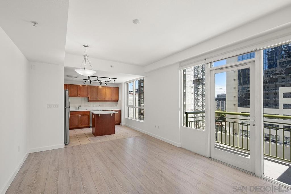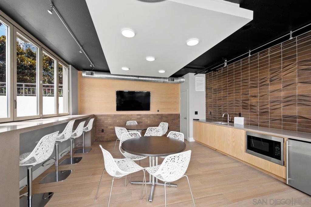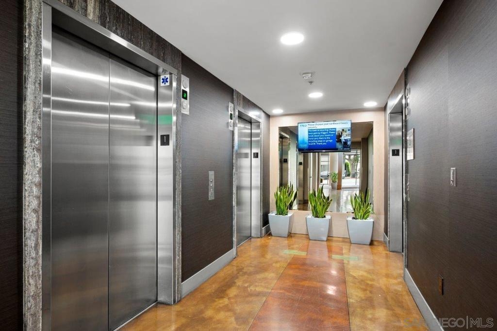 This 12th floor Treo residence offers Downtown San Diego skyline views from every room! Modern LVP flooring runs through the open living area and bedroom. Floor-to-ceiling windows flood the condo with natural light controlled by chic Hunter Douglas silhouette shades. The kitchen showcases warm wood cabinetry, quartz counters and center island, a full suite of upgraded stainless appliances with gas range, built-in microwave, and dishwasher - all under vivid lighting. The bedroom offers two closets, one with a custom organization system, plus a bathroom with a quartz vanity and combo shower/tub. Other features include a private balcony, fresh paint throughout, front-load washer and dryer, gas fireplace, RARE private storage in a temperature-controlled room, and a secured parking space on the first floor. Treo sits at the center of it all: walkable to the waterfront, Little Italy, the Gaslamp, and everything that makes downtown San Diego worth living in. Great building amenities including pool, hot tub, gym, BBQs, community rooms, and staffed lobby with LOW HOA dues. Long regarded as one of the best values in Downtown San Diego, the Treo HOA is exceptionally well managed, keeping dues low while maintaining a high level of building services and amenities. Enjoy a heated pool and spa, fitness center, multiple recreation and meeting rooms, barbecues and peaceful courtyard, plus security and concierge services. The lobby, hallways, and amenities have all been recently refreshed to foster a warm contemporary feel. Walk to the multitude of eateries and shops in Little Italy or Portside Pier, or take a slightly longer stroll to Seaport Village in the Marina District or the bustling Gaslamp Quarter. Treo is both FHA and VA approved.