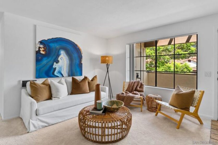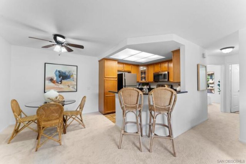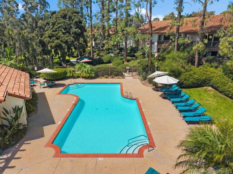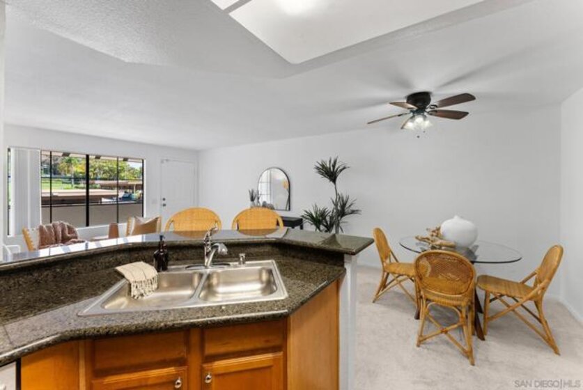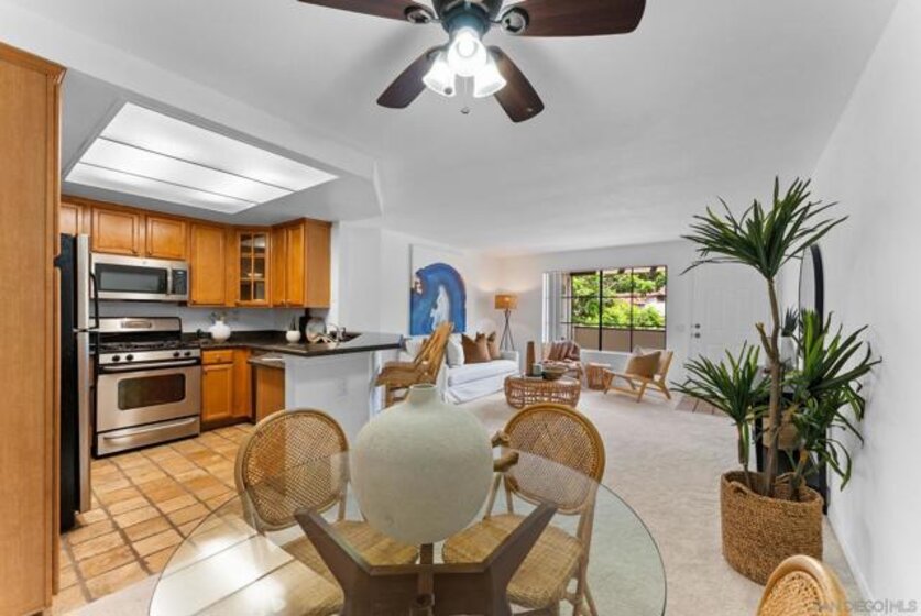 This 2-bedroom, 2-bathroom top-floor condominium offers 864 square feet of comfortable living with abundant natural light. The open layout is enhanced by fresh paint, new carpet, and a covered outdoor porch perfect for relaxing or entertaining. The community features resort-style amenities including a tennis court, clubhouse, pool, jacuzzi, and sauna. Residents enjoy a family-friendly yet professional atmosphere, with the added benefit of convenient freeway access, proximity to shopping and dining, and just minutes from the beach. Located within the highly regarded Del Mar School District, this home presents an exceptional value in a sought-after location.