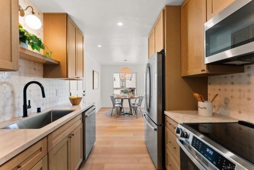 Dwell West Homes proudly presents Unit 3 at 1278 Pacific Beach Drive — a turnkey coastal condo just steps from Mission Bay and Fanuel Street Park. Located in a well-maintained gated complex, residents enjoy a shared rooftop deck with bay breezes and sunset views, along with the convenience of elevator access. The unit has been fully renovated with a clean, modern design and thoughtful layout. Highlights include a refreshed kitchen with contemporary finishes, updated bathrooms, new flooring throughout, and in-unit laundry hookups for everyday convenience. The home is move-in ready and ideal for low-maintenance coastal living whether you’re looking for a primary residence, second home, or investment (HOA does not currently prohibit short term rentals). Parking is a standout feature, offering a private garage plus an additional parking space — a rare find this close to the bay. Ideally situated within walking distance to Mission Bay, the beach, parks, dining, and shopping, this property delivers an exceptional blend of lifestyle, location, and convenience.