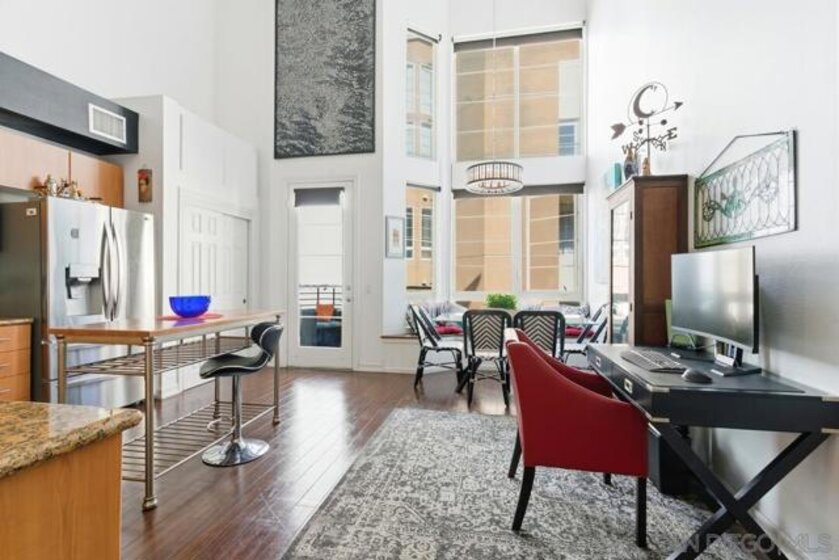 Live at the heart of it all in this stunning top-floor East Village condo in the gated Union Square community. Soaring 19-foot ceilings, designer upgrades, and bright interiors define modern city living. The chef’s kitchen features energy-efficient appliances & opens to spacious living areas and a sunny balcony. The loft suite offers a bonus office and custom window-seat & closet built-ins, in-unit laundry, secure parking, and premier amenities—steps from Petco Park, Gaslamp, and East Village Green Park.
