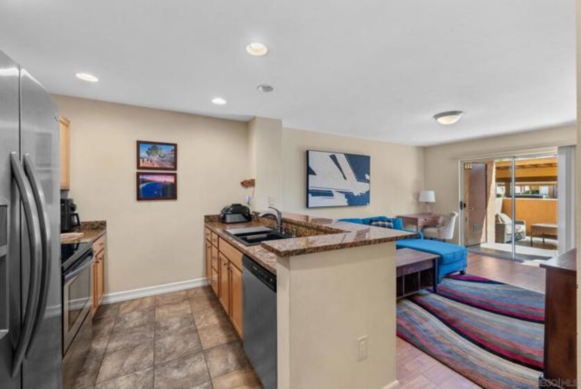 Step into this MOVE-IN READY beautifully maintained 1-bedroom, 1-bath and instantly feel at home. Designed for comfort and convenience, this LIGHT and BRIGHT unit boasts an updated kitchen with gleaming granite countertops, stainless steel appliances, and rich wood cabinetry. The eat-in bar adds functionality and style, making it a perfect spot for casual meals or entertaining guests. Spacious bedroom with mirrored closet doors. Enjoy the convenience of IN-UNIT LAUNDRY and the seamless flow to your partially-covered patio—ideal for morning coffee or relaxing evenings. An outdoor storage closet adds extra functionality to this lovely space. Part of the highly sought-after Villa Taviana community, you’ll enjoy resort-style amenities, including two sparkling pools with spas, a fitness center, tennis courts, BBQ areas, a clubhouse, andEV charging stations. HOA covers water, trash pickup, exterior maintenance, and roof care, ensuring easy living.LOCATION for this unit is one of the best in the complex. Reserved carport parking adds an extra layer of convenience. Perfectly situated with easy freeway access, this condo is close to shopping, dining, award-winning schools, and everything else you need.It’s more than a home, it’s a lifestyle!