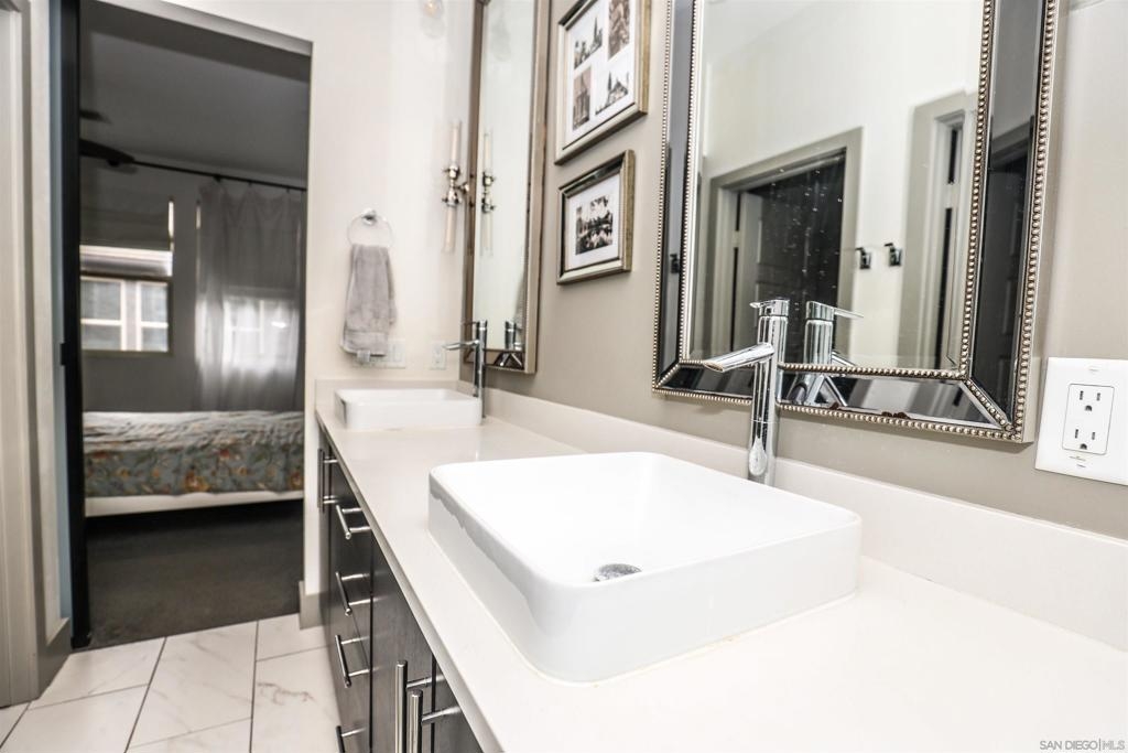 Two-story townhome in CIVITA with open floor plan. The first floor is the living room with a half bath and a spacious kitchen, featuring custom cabinets and plenty of counter space. High ceilings and custom lighting provide a great ambiance. Upstairs are the three bedrooms, two full bathrooms, and laundry room. The master suite has dual vanities, a large shower, and a huge walk-in closet with organizers. This home’s upgrades include tile flooring, faux brick wall, custom kitchen & closet cabinetry, updated countertops & backsplash, high-end stainless steel appliances, custom lighting, vessel bathroom sinks, NEST heating and A/C controls, and an electric car charger. This townhome has many conveniences, including direct access from the two-car garage, nearby guest parking, and a serene location. The neighborhood pool is a short walk away, or if you want more amenities, you can visit the main clubhouse. CIVITA has resort-style amenities, including exercise & lounging pools, cabanas, a community room, a gym, a conference room, a game room, a tech center, and more! CIVITA is located just a few miles from downtown San Diego & the beaches. Everything you could want is just a couple of minutes away, including shopping, entertainment, and restaurants. The CIVITA community is new and has professional landscaping, community parks, and a new elementary school.