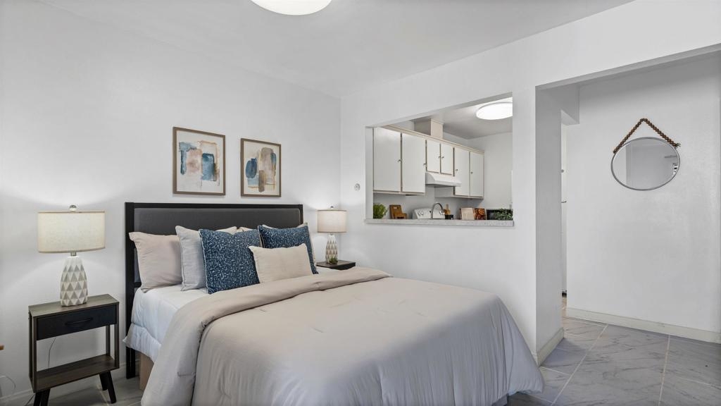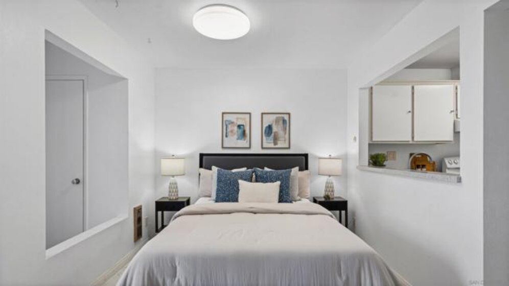 A charming STUDIO positioned in an upstairs unit; offering a bright open-concept, a spacious layout, and designed for both comfort and functionality. A full size kitchen and full bathroom provide both style and practicality, while a generous closet features approximately 10 feet of hanging space along with 6-foot-wide built-in drawers for exceptional storage. Set within a lush, well-maintained community, residents enjoy expansive grassy areas along with amenities including a pool, laundry facilities, and a recreation room. Located in the vibrant Linda Vista neighborhood. One block walking distance to Mesa College and short walk to Sharp Hospital, this home offers unmatched convenience with easy access to shopping, dining, beaches, and major freeways, making it an ideal opportunity for commuters, students, or those seeking a low-maintenance lifestyle in a central San Diego location.