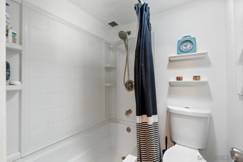 This beautiful, light-filled corner residence offers over 1,200 sq. ft. of spacious living with unbeatable walkability score to Hillcrest and Balboa Park. Step inside to discover elegant charcoal-gray tile flooring and an updated kitchen featuring stainless steel appliances, sleek cabinetry, and modern finishes that elevate the entire space. The open-concept layout provides both functionality and flexibility, making it easy to customize the home to your style. One of the standout features of Unit 2D is the expansive wrap-around patio—exclusive to only a select few corner units in Coral Tree Plaza—perfect for effortless indoor/outdoor living. The primary suite is a true retreat, complete with a dedicated work area, custom closet build-outs, ample cubbies, and a generous bath with double vanities and a luxurious soaking tub. Additional highlights include full-size stackable laundry and updated mechanical systems, making this an ideal choice for even the most discerning buyer. Coral Tree Plaza offers a vibrant and amenity-rich lifestyle, including a heated pool, spa, tennis court, fitness center, clubhouse with pool table and kitchen, bike lockers, car wash area, and guest parking. The HOA is exceptionally well-maintained with full-time on-site management, maintenance, and cleaning staff—ensuring the community is always pristine. Best of all is the neighborhood, filled with award winning restaurants and fun nightlife yet close to downtown, the beach and easy freeway access. There are 3 guests suites available for nightly lease for a nominal fee for residents guests.